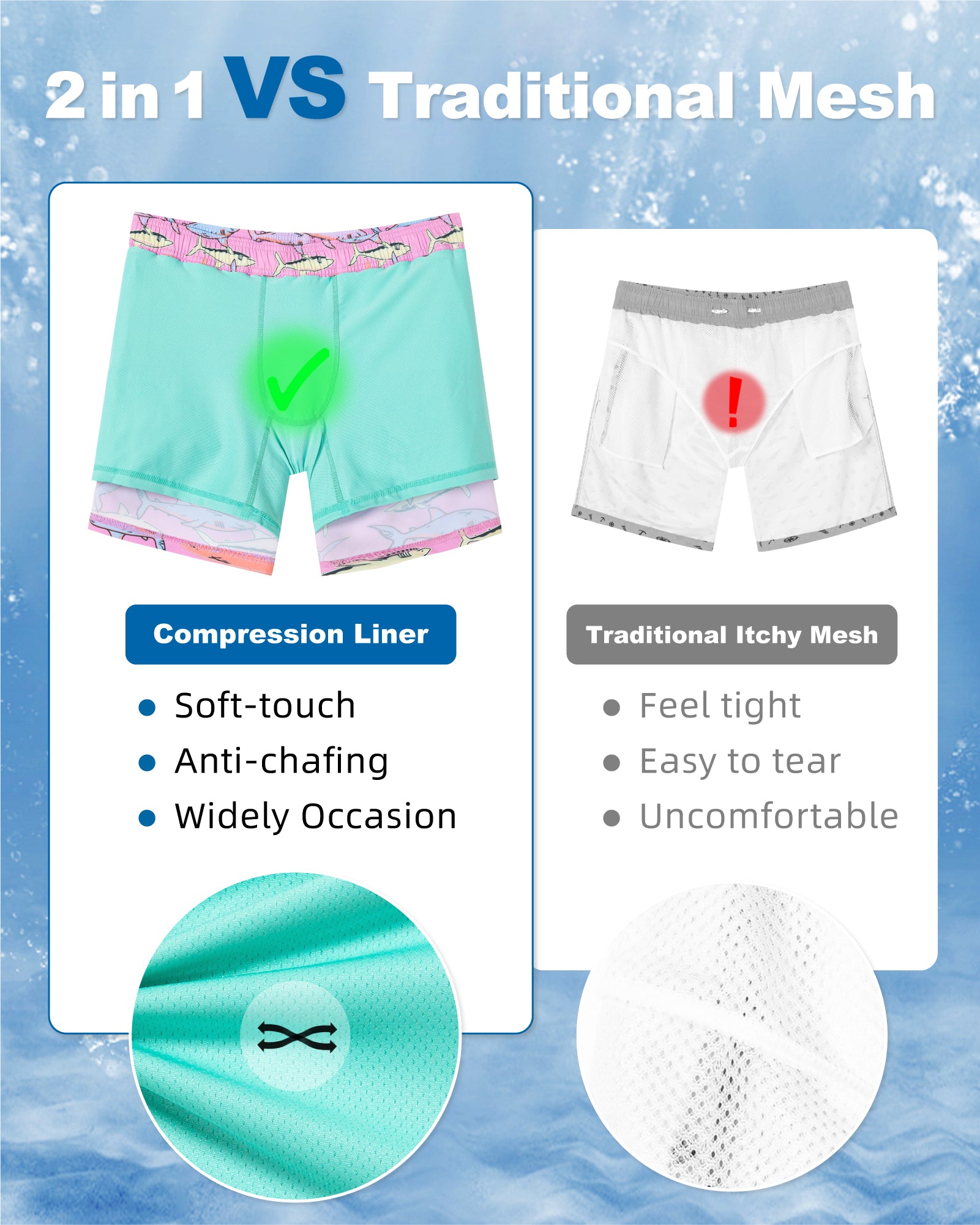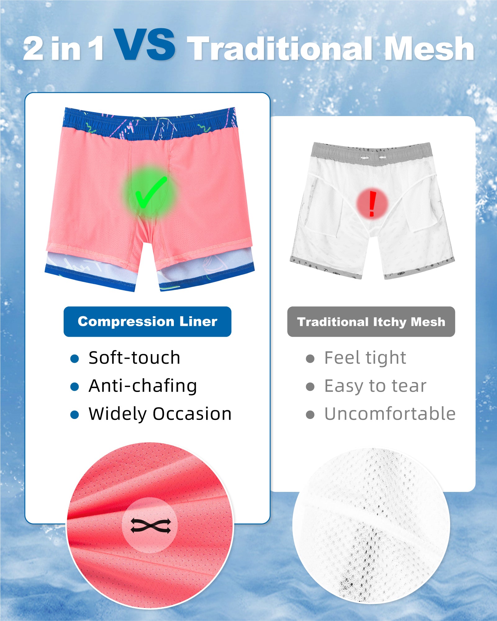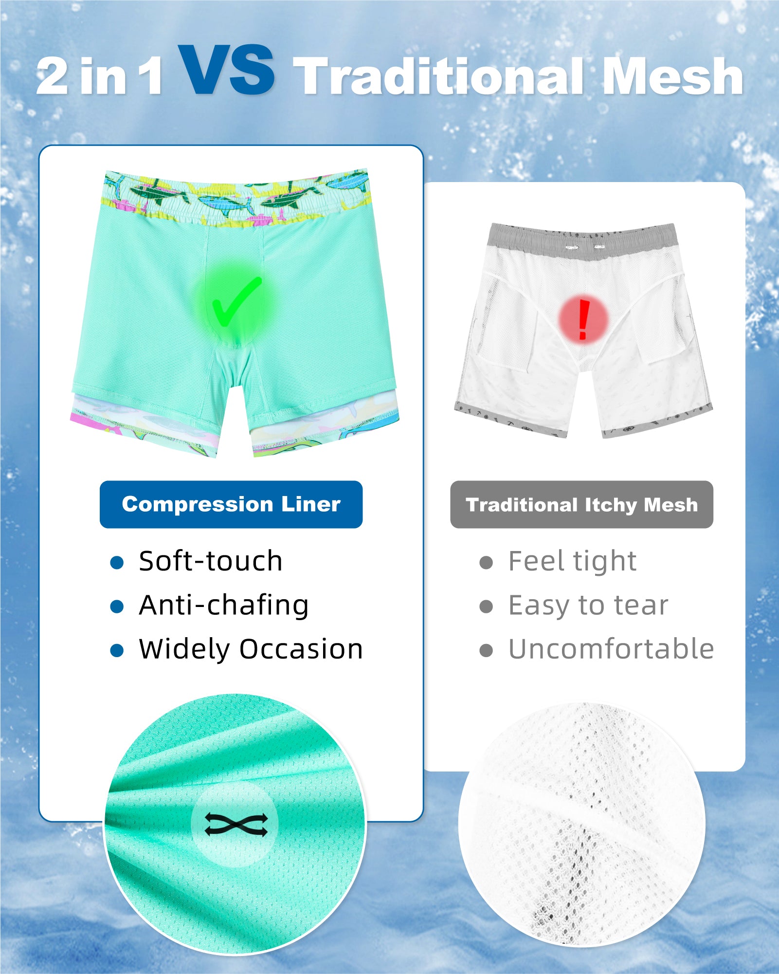 Surfcuz 9-Inch 2-in-1 Swim Shorts for Men