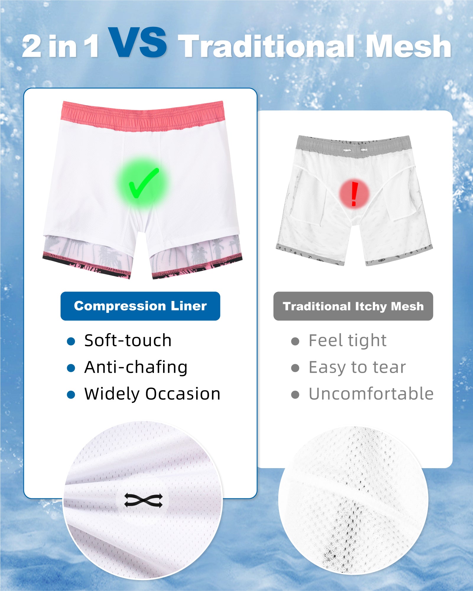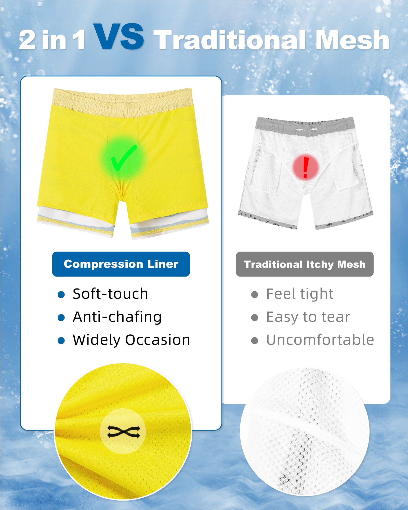 Surfcuz Men’s 9-Inch 2-in-1 Swim Trunks – For Performance in and Out of Water