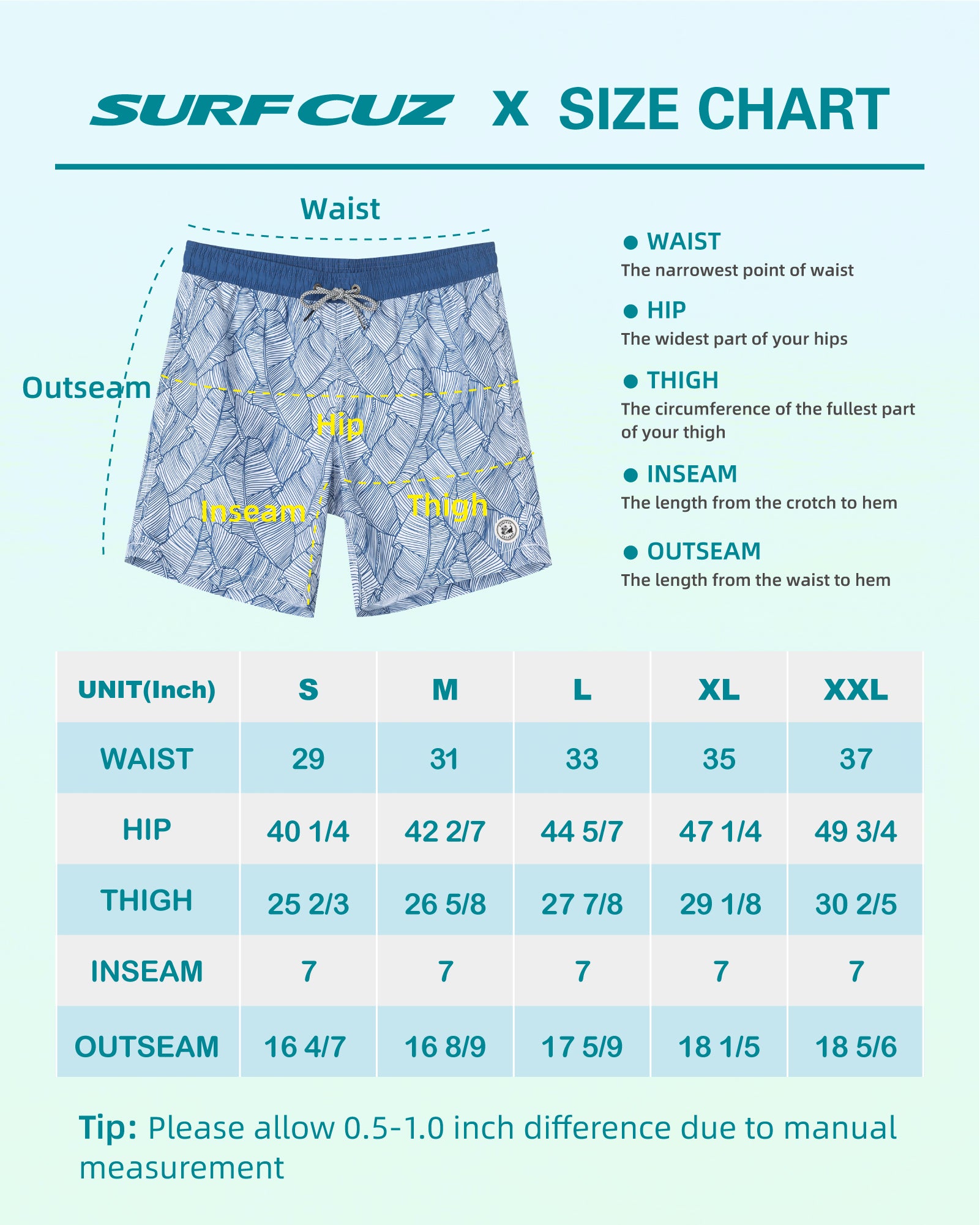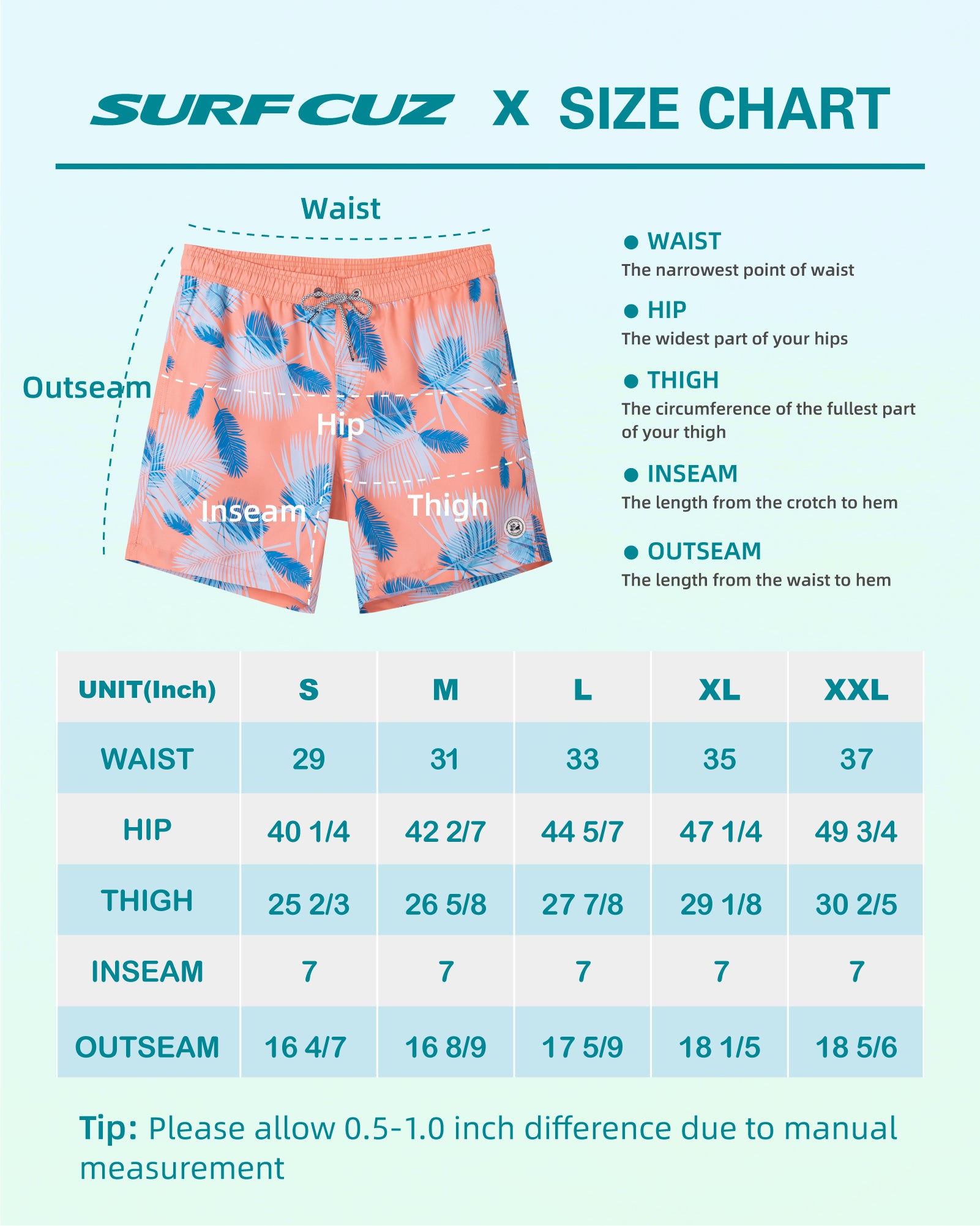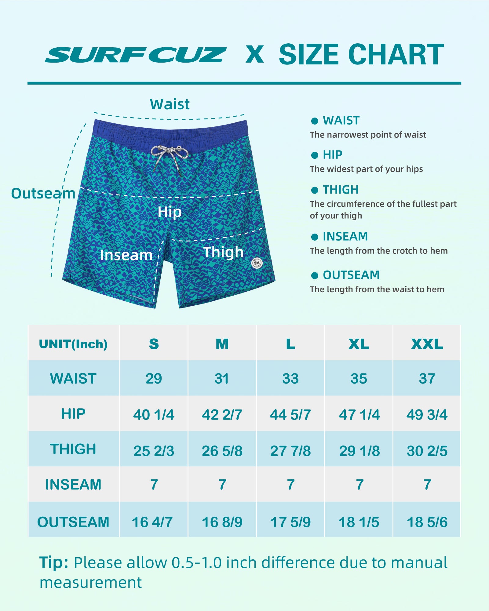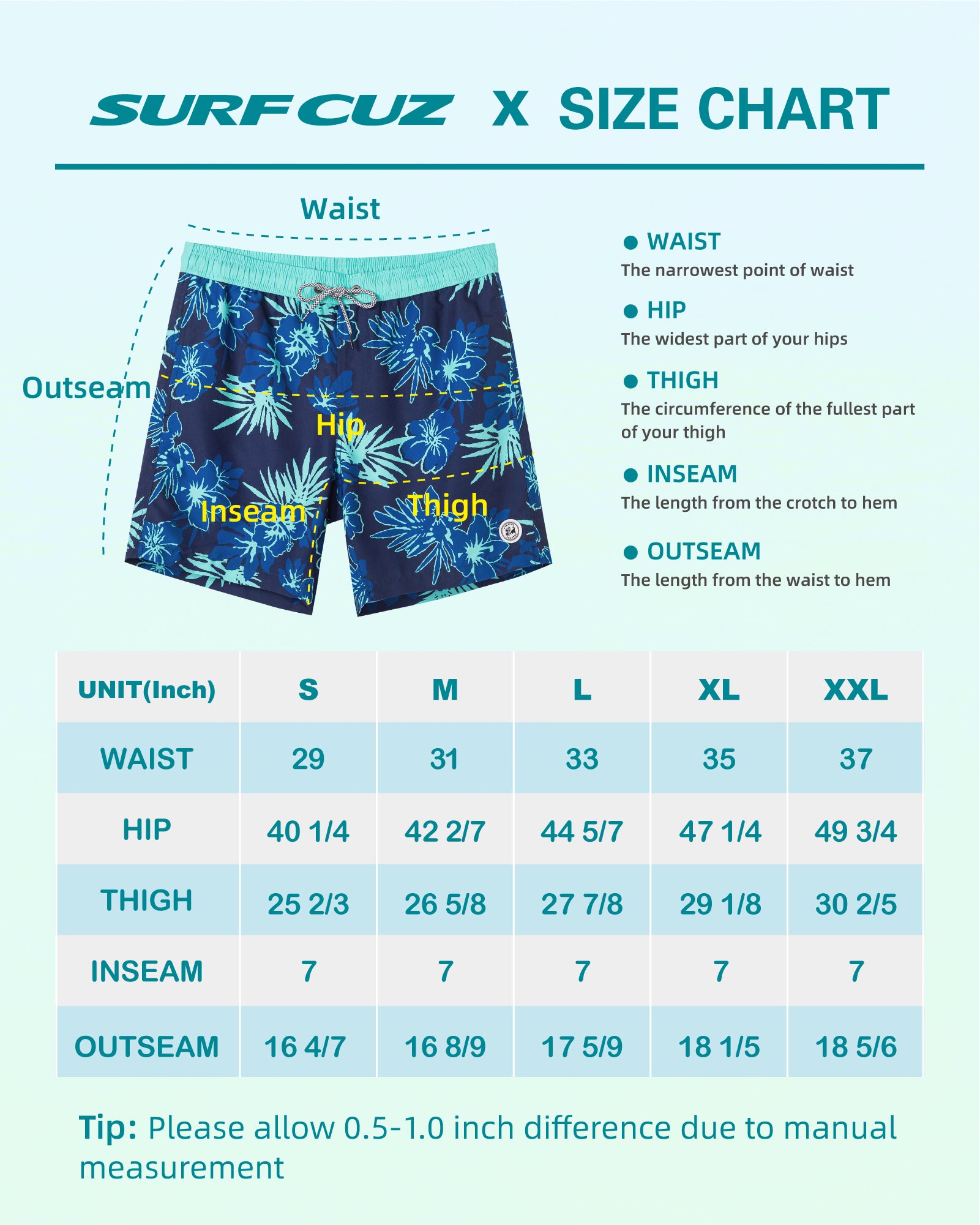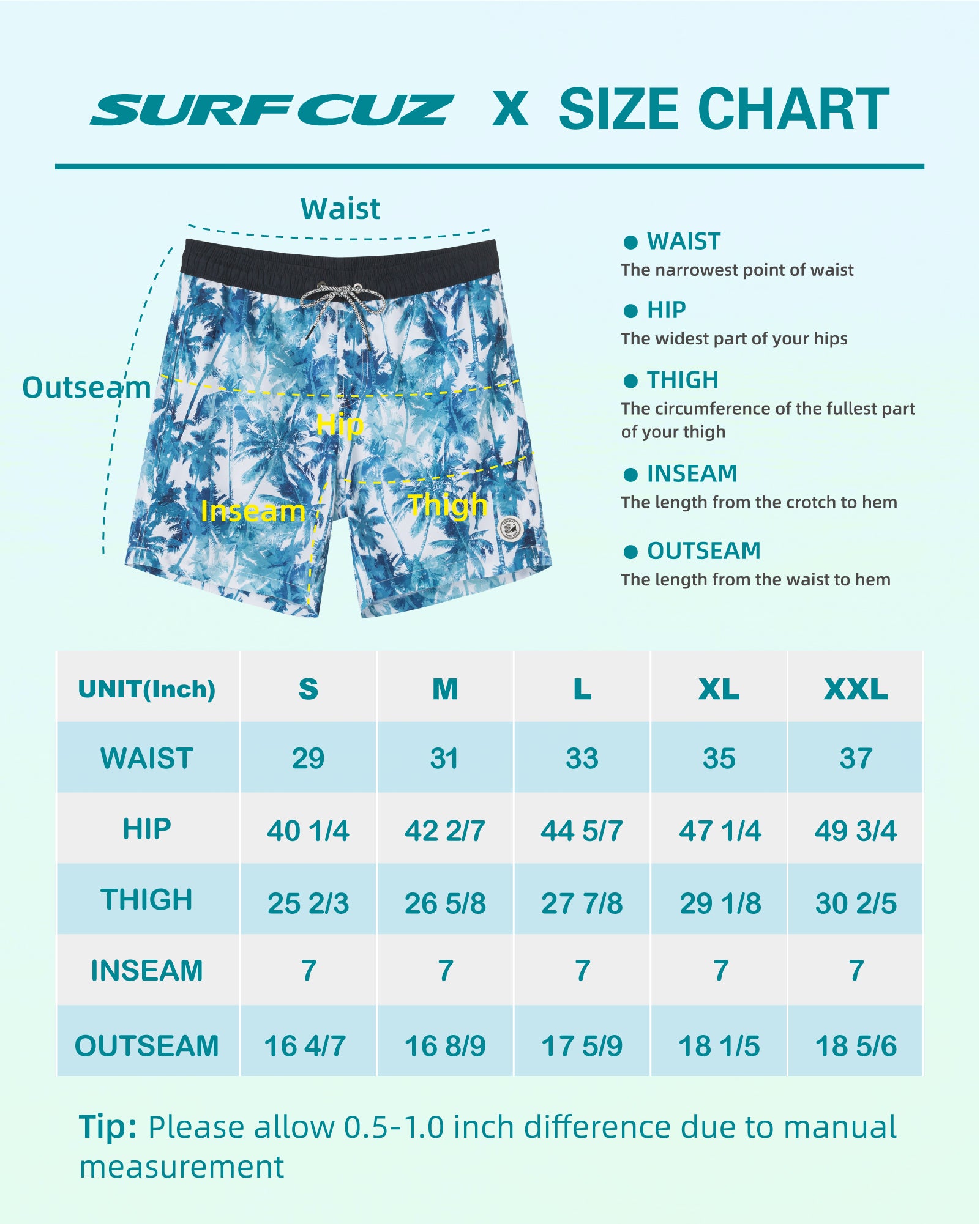 Surfcuz Men's 7" Quick-Dry Swim Trunks with Pockets and Mesh Lining