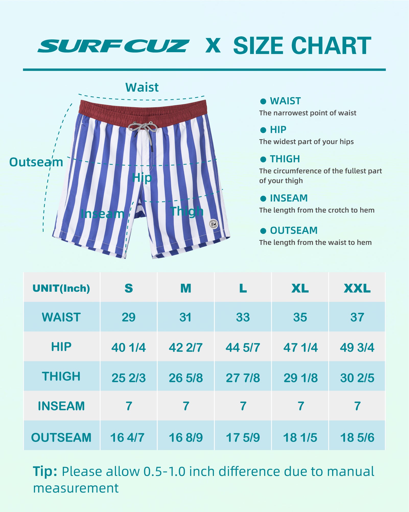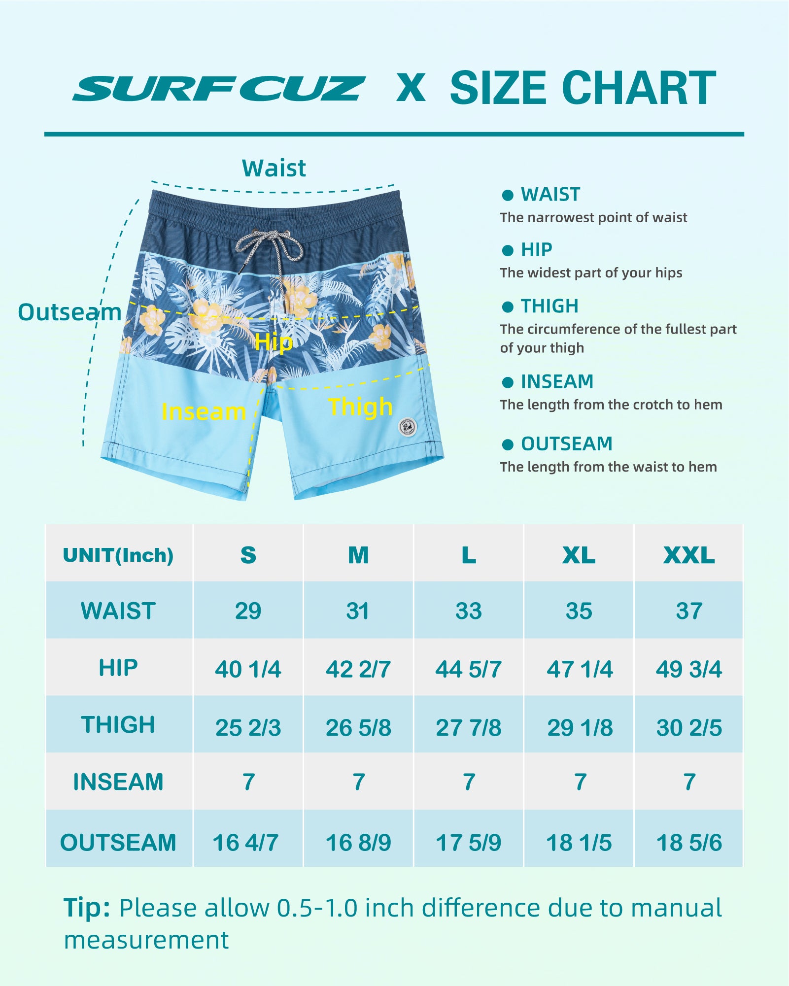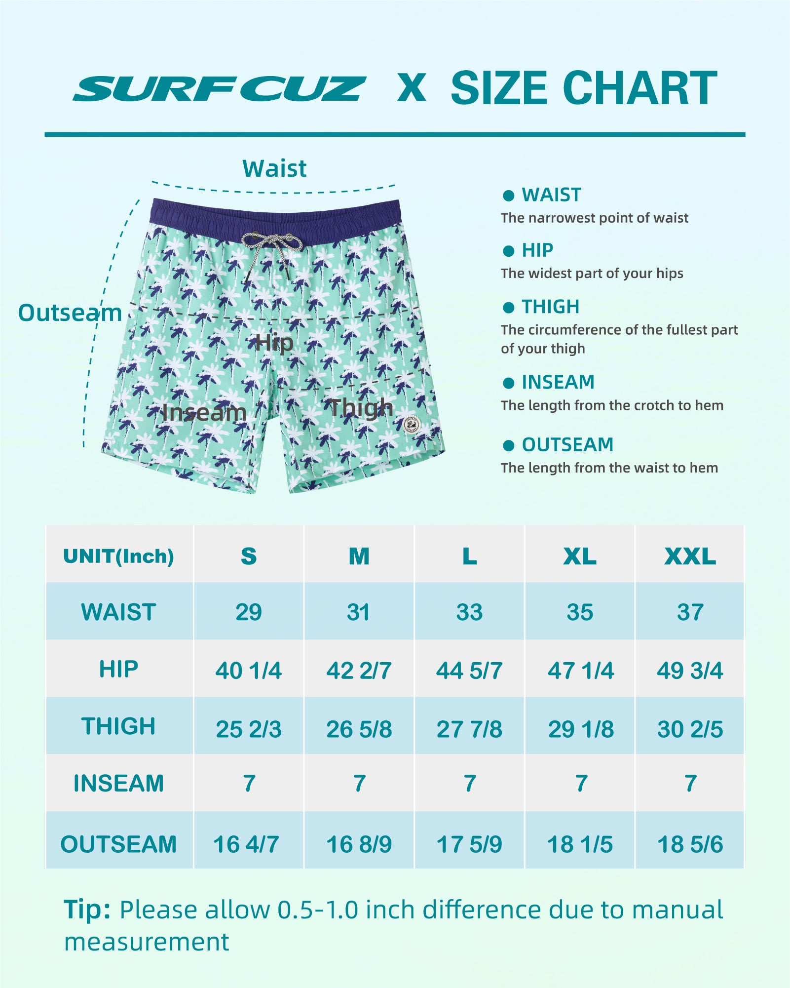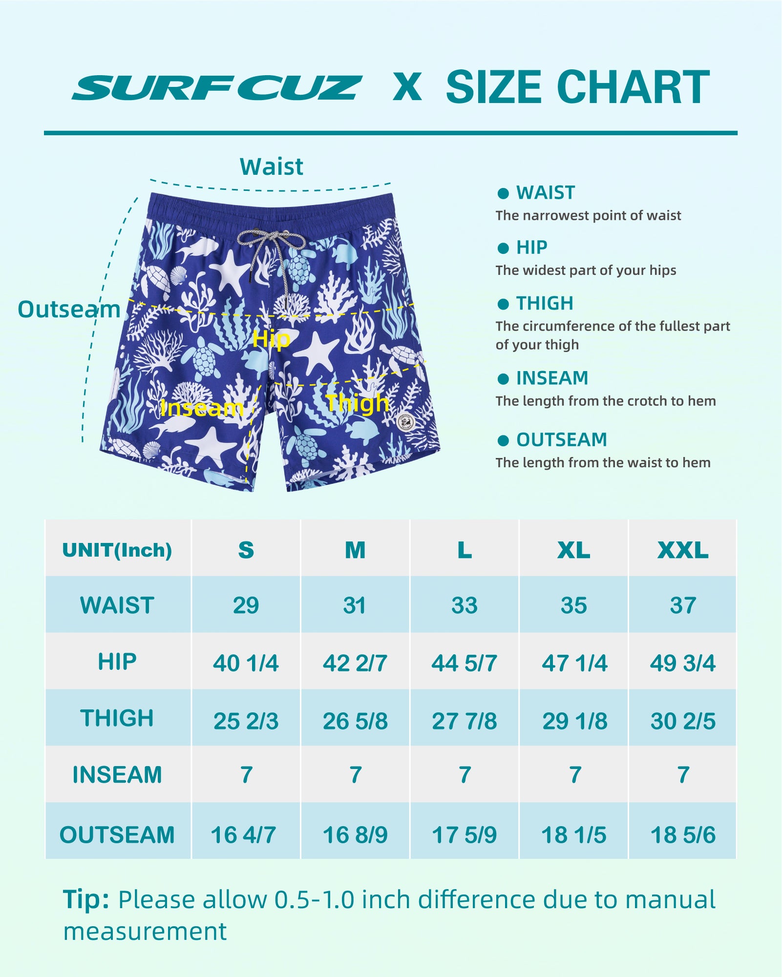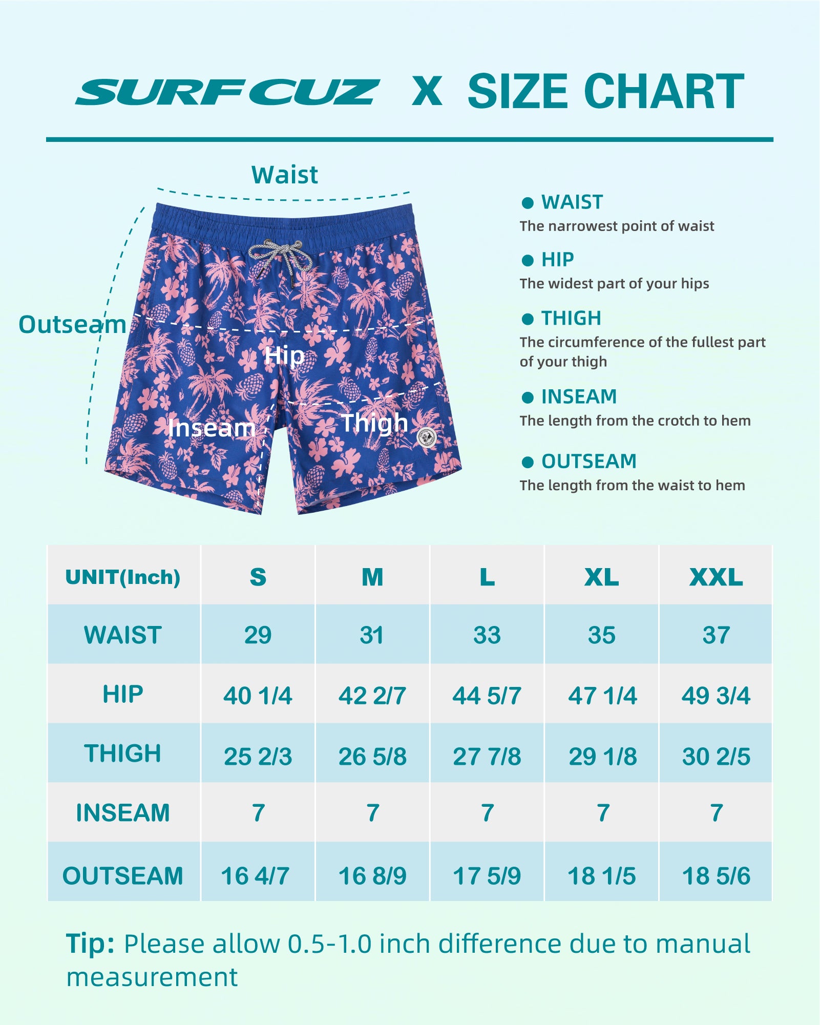Surfcuz Men's 7" Quick-Dry Swim Trunks with Pockets and Mesh Lining