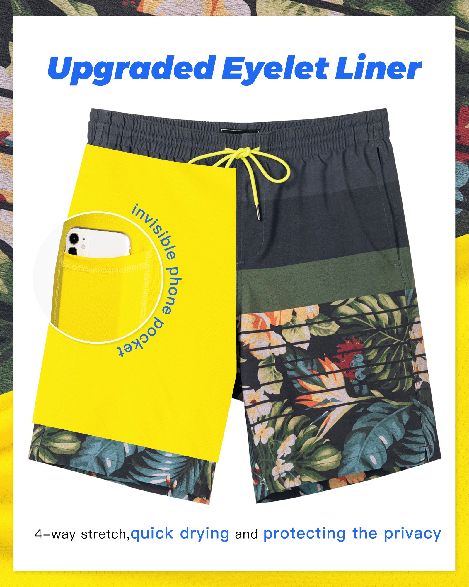 Men's Quick-Dry Stretch Lining 4.5 Inch Swim Trunks