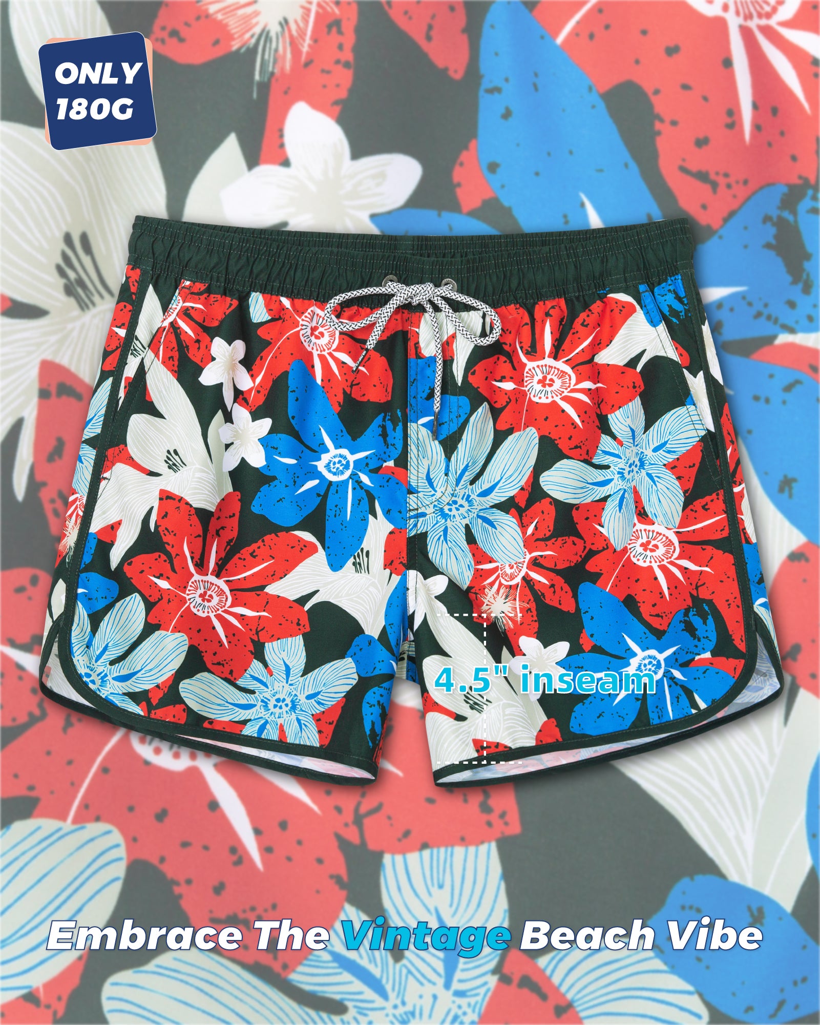 Men's 5 Inch Vintage Quick-Dry Board Shorts