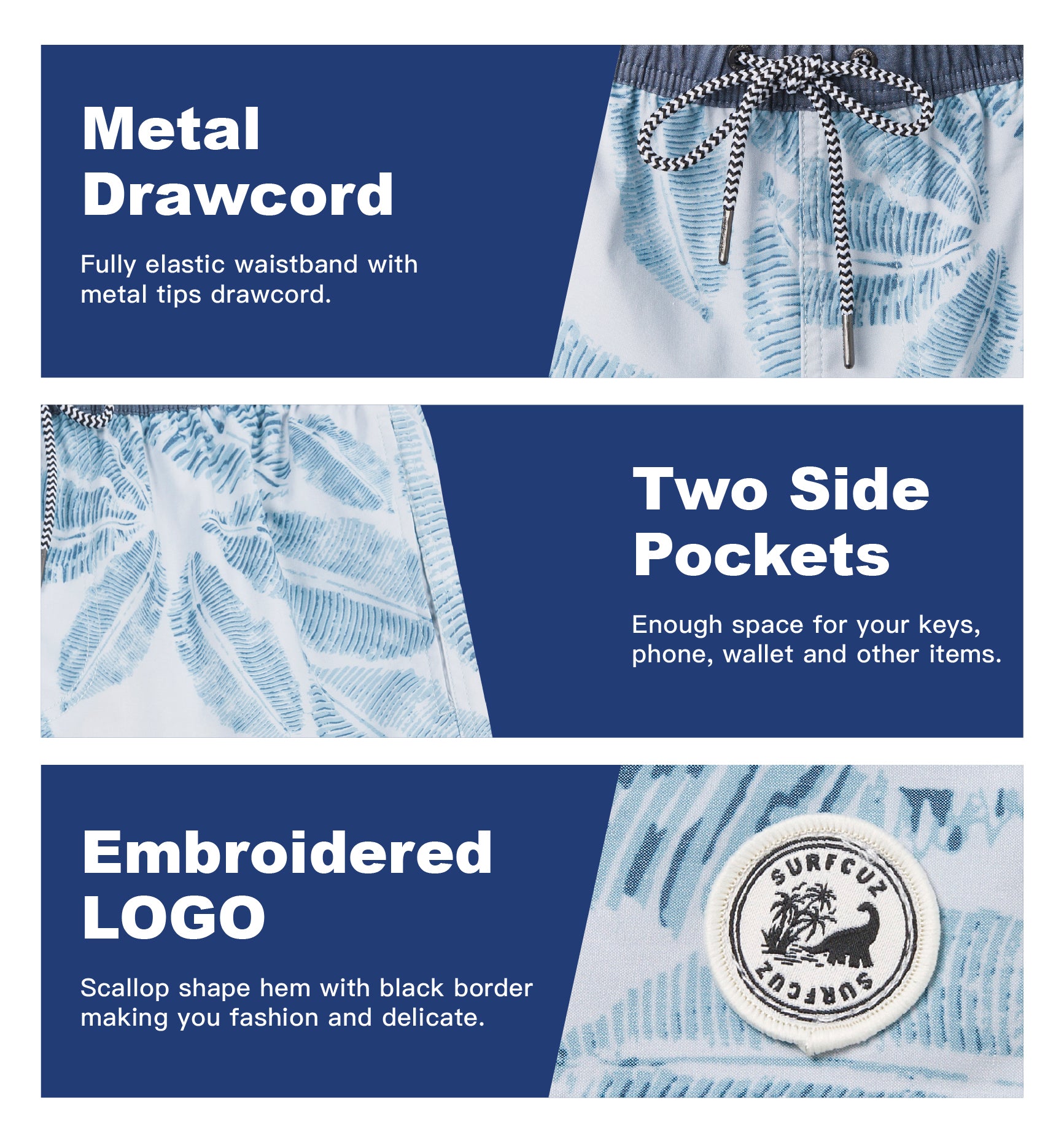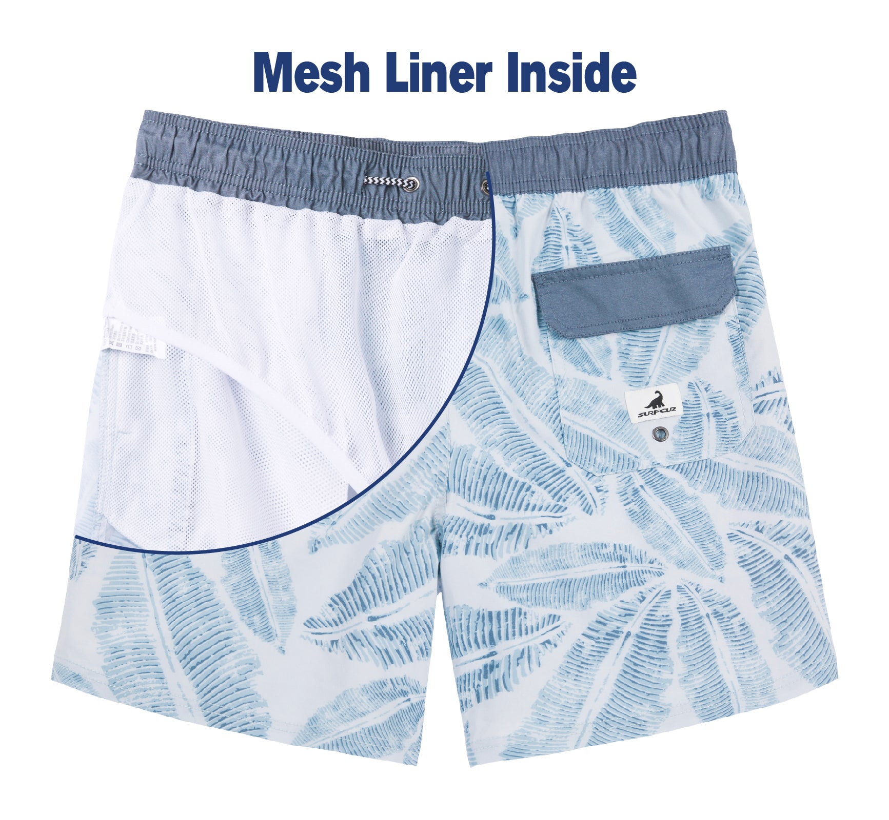 Men's 7" tropical 2 way stretch printed Vintage Swim Trunks