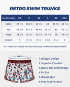 - MENS SWIM TRUNKS BOARDSHORTS: Machine-washable, our vintage bathing suits are designed to keep their vibrant colors and shape, even after repeated washes.