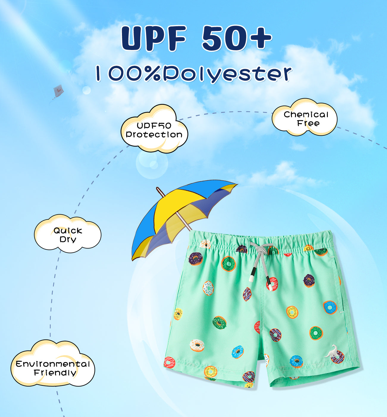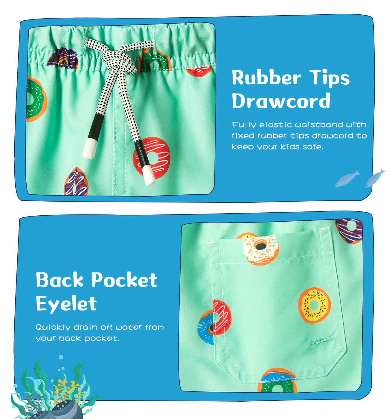 Bañador de secado rápido con estampado de donuts verdes para niño
