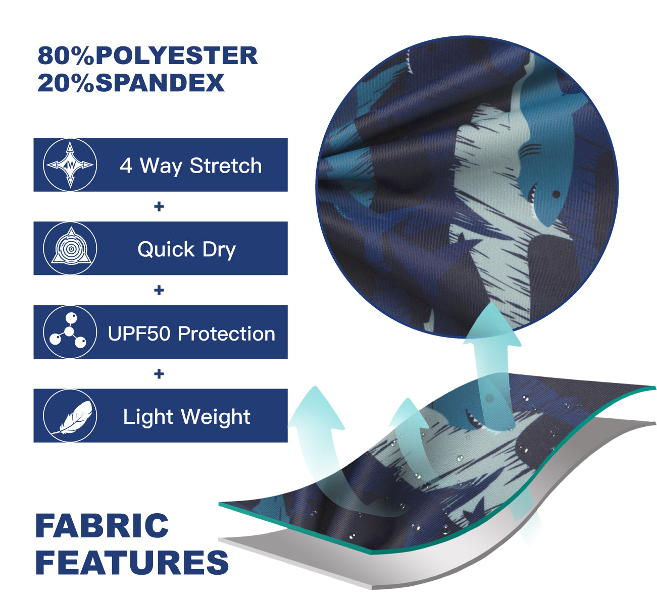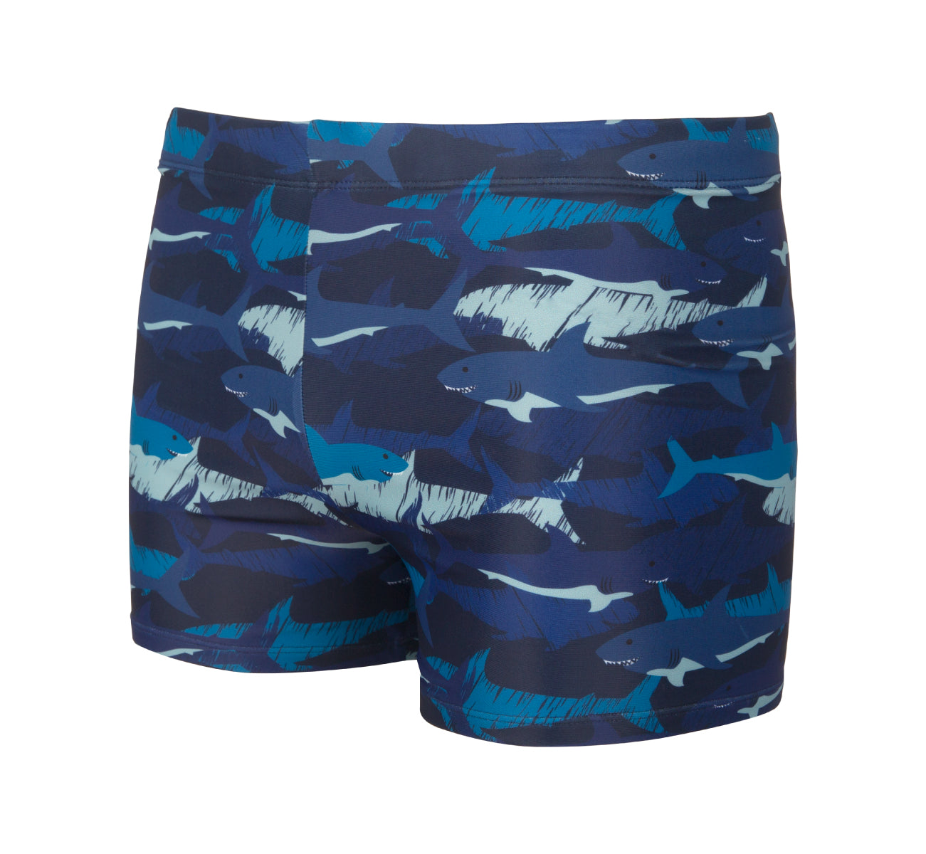Traje de baño de 7" con empalme de pierna cuadrada y estampado de tiburón para hombre