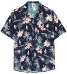 Camisa hawaiana informal de manga corta con estampado de árbol de coco para hombre