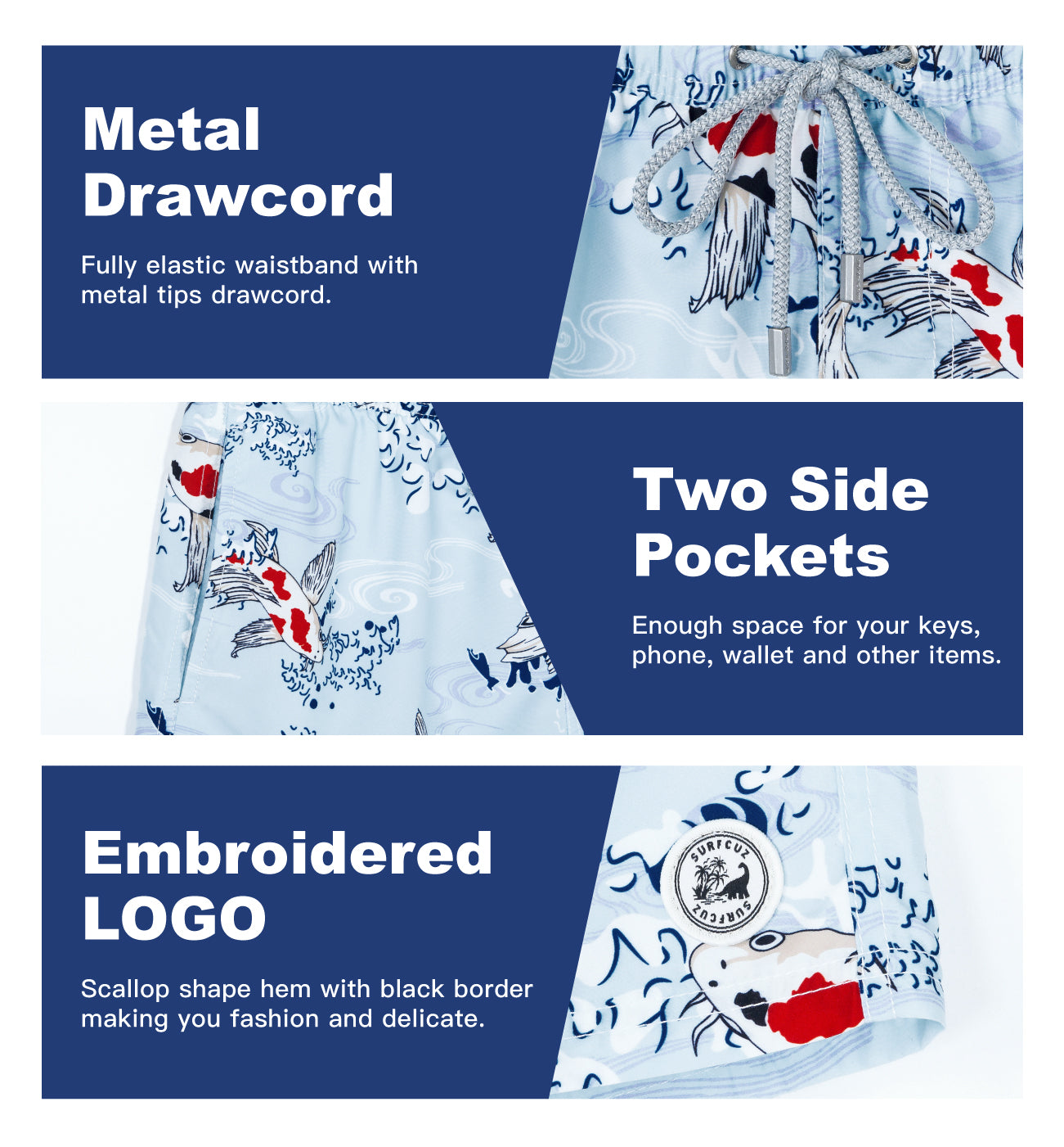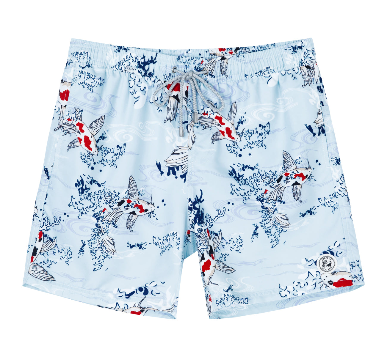 Pantalones cortos hawaianos casuales con estampado de peces para hombre