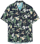 Camisa hawaiana informal de manga corta con estampado de mundo de flores para hombre