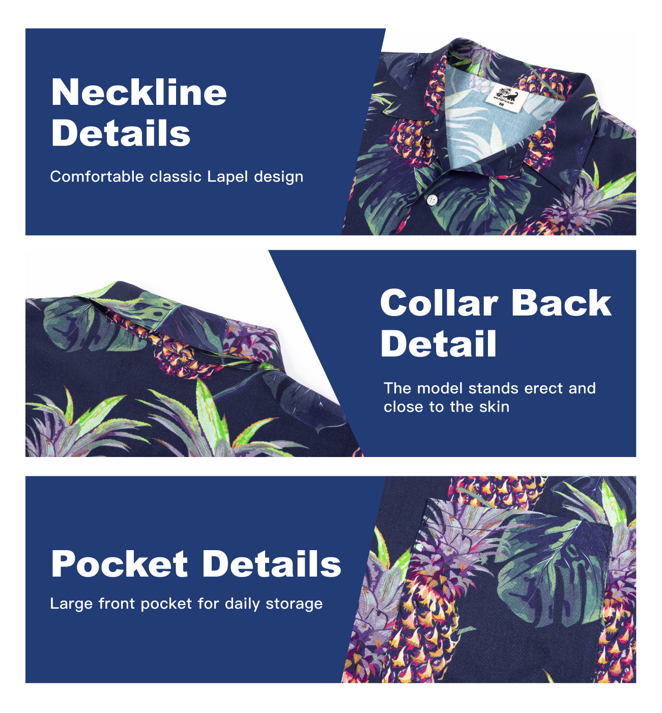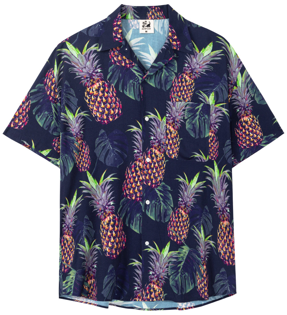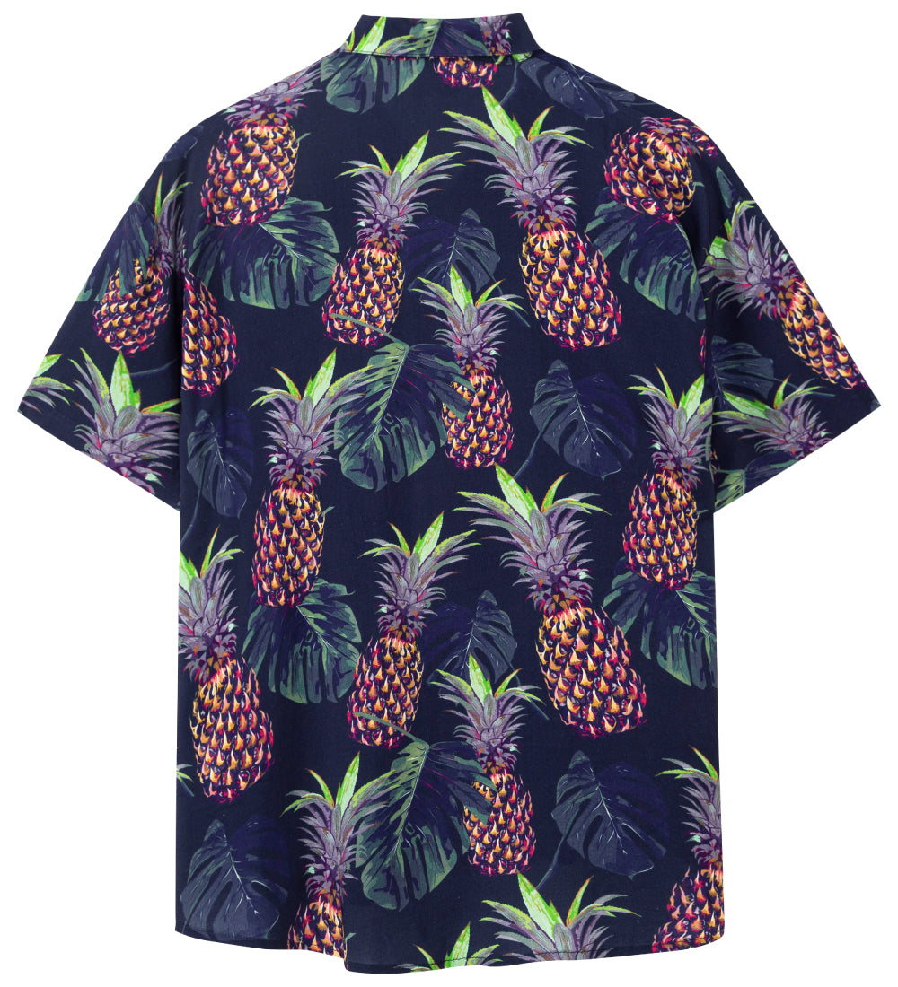 Camisa hawaiana informal de manga corta con estampado de piña para hombre