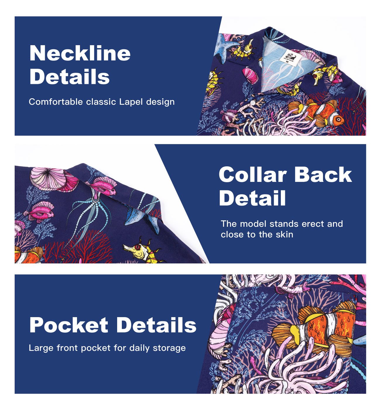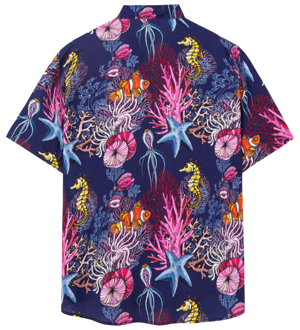 Camisa hawaiana informal de manga corta con estampado de fondo marino para hombre