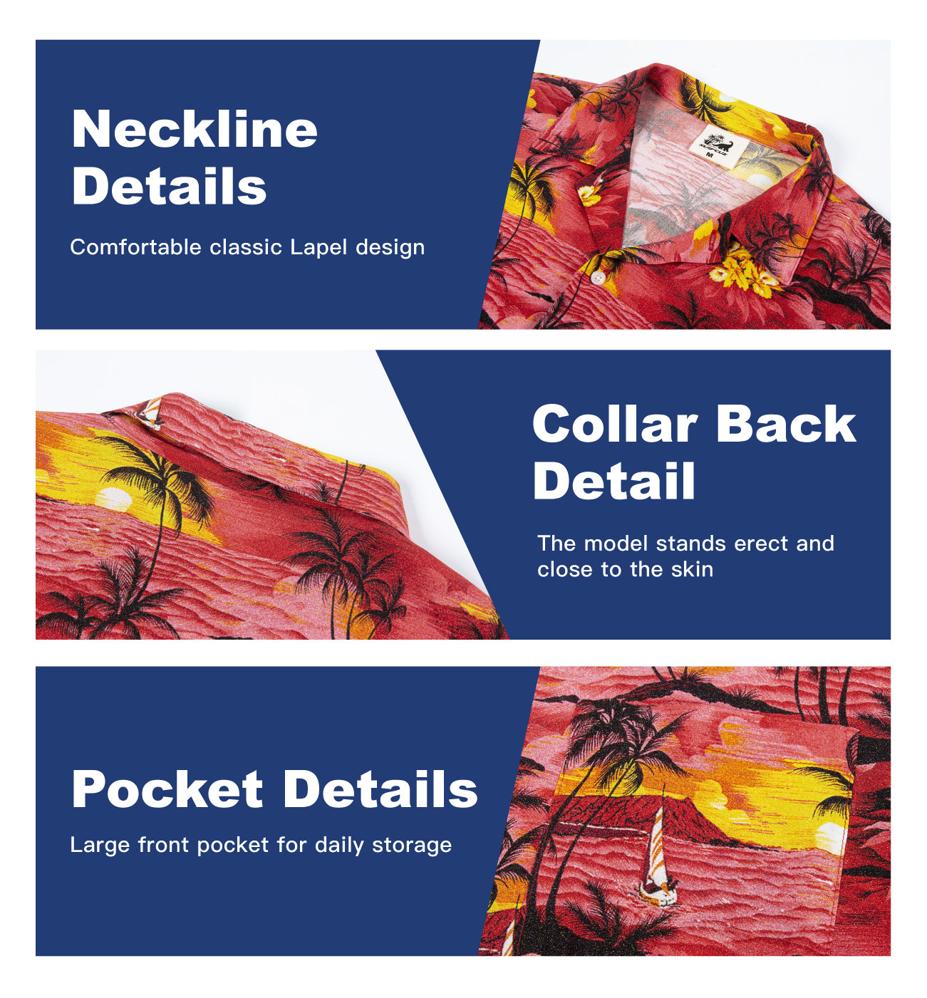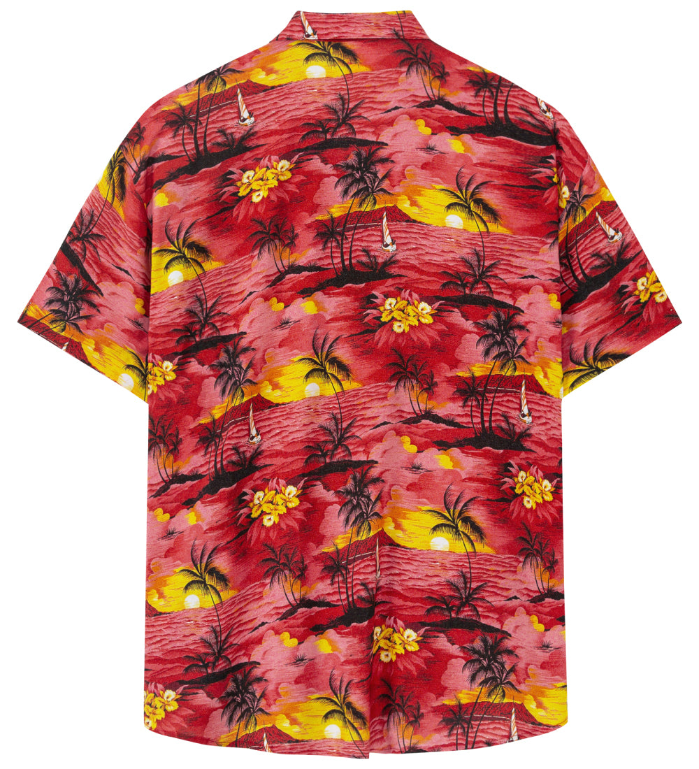 Camisa hawaiana informal de manga corta con estampado de puesta de sol para hombre