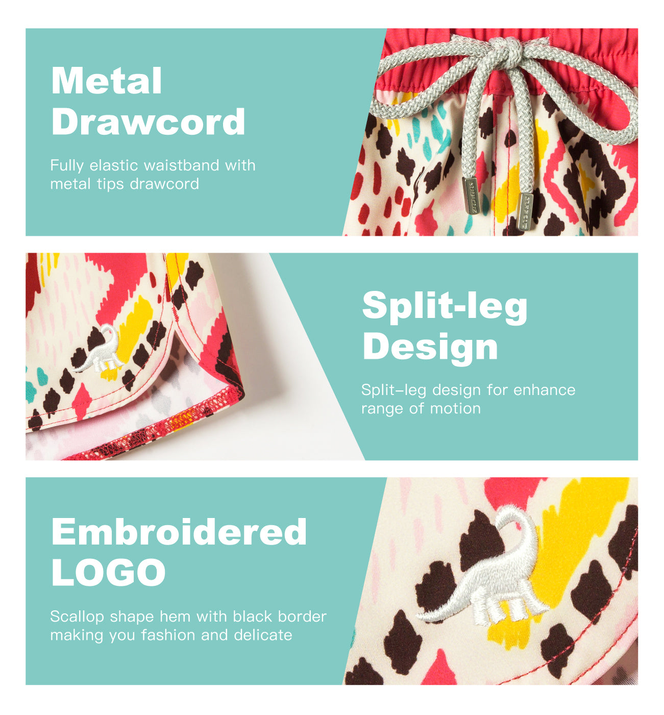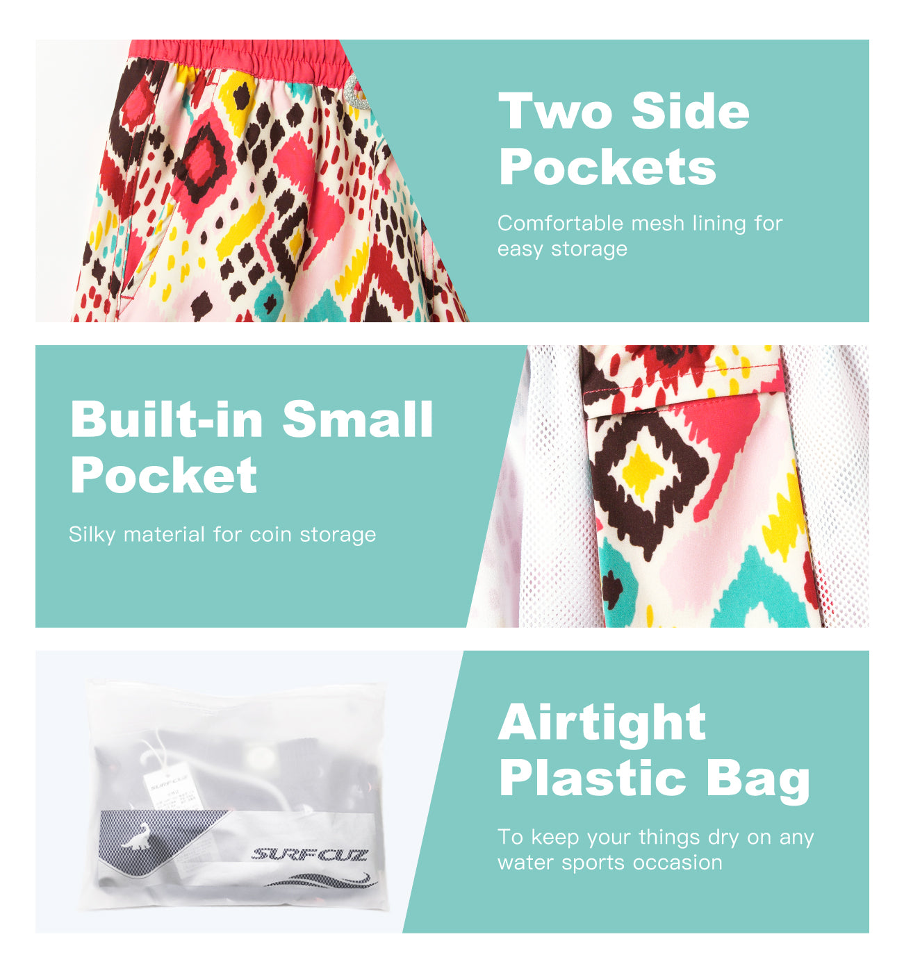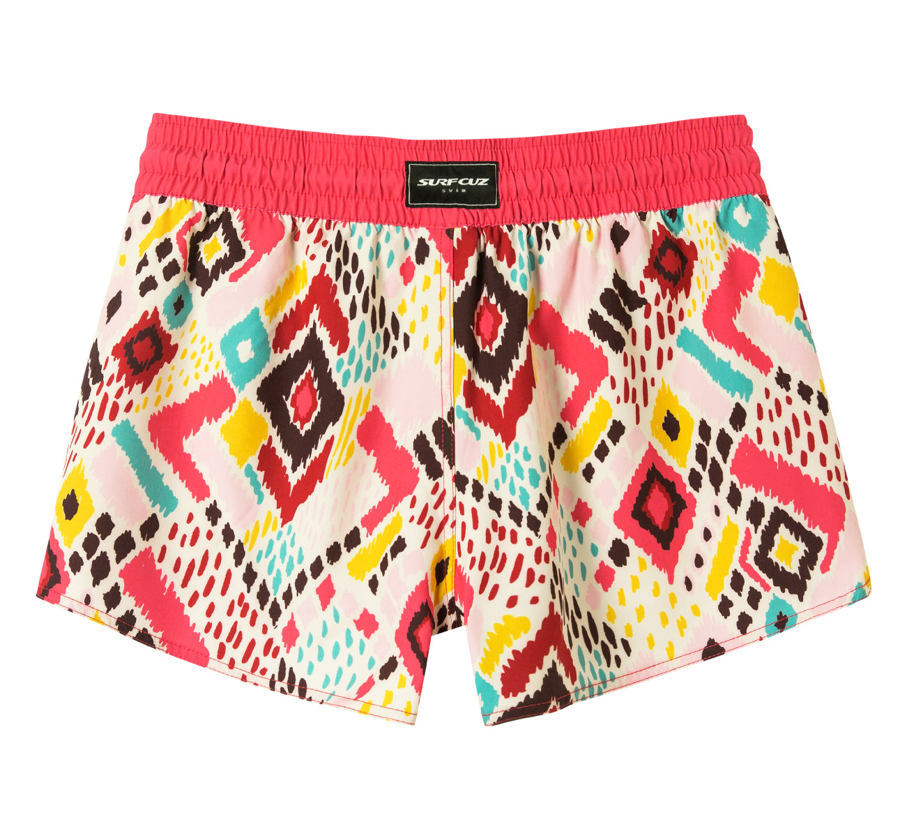 Bañador elástico en 4 direcciones rosa con geometría cromática de 3,5" para mujer