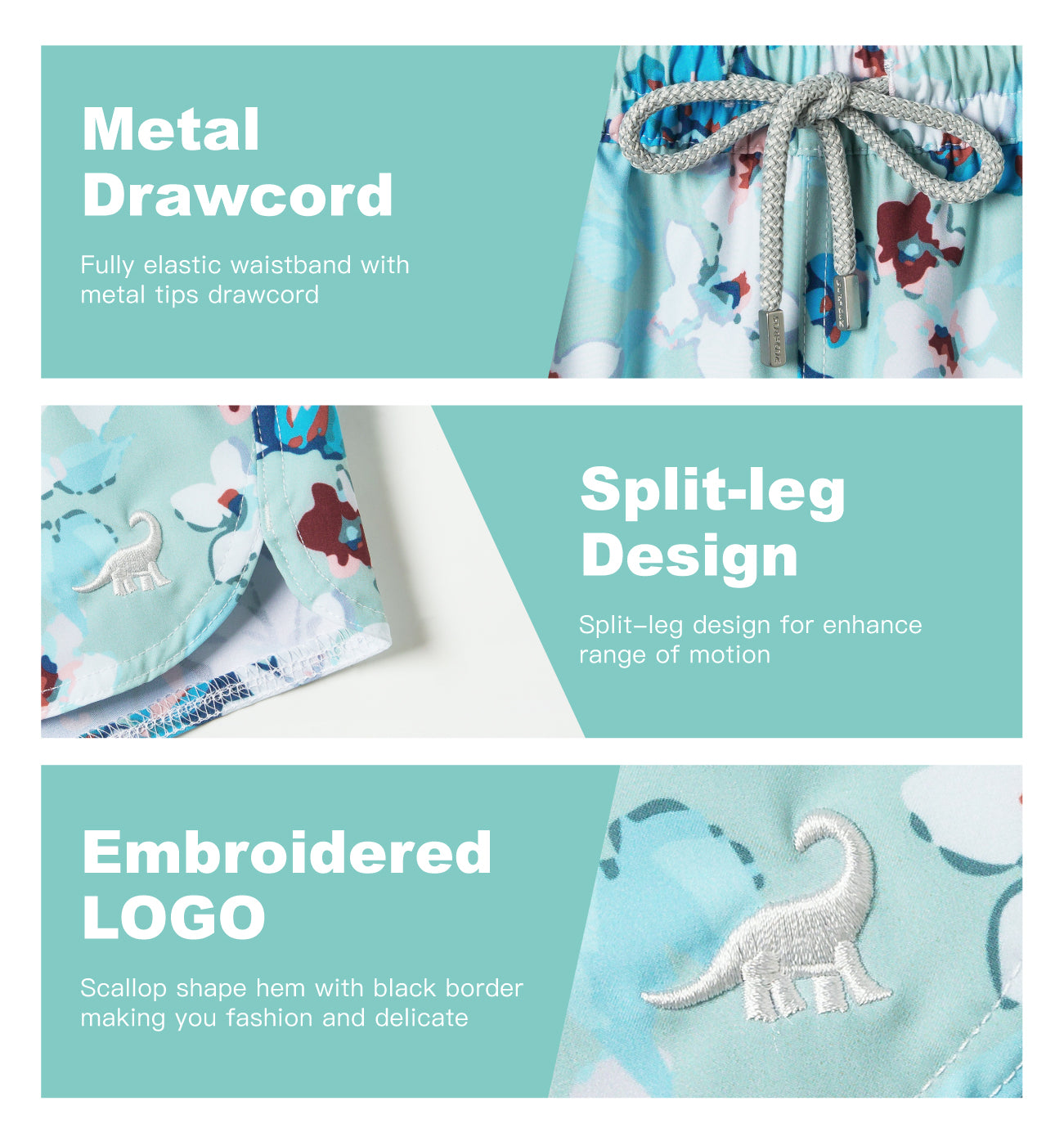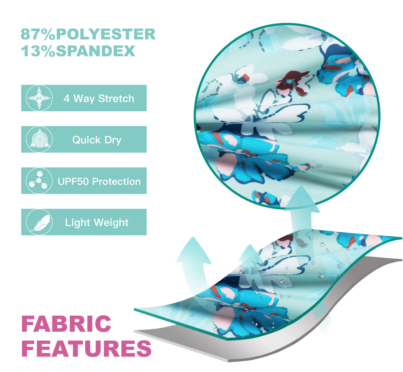 Bañador elástico en 4 direcciones con estampado floral azul claro de 3.5" para mujer