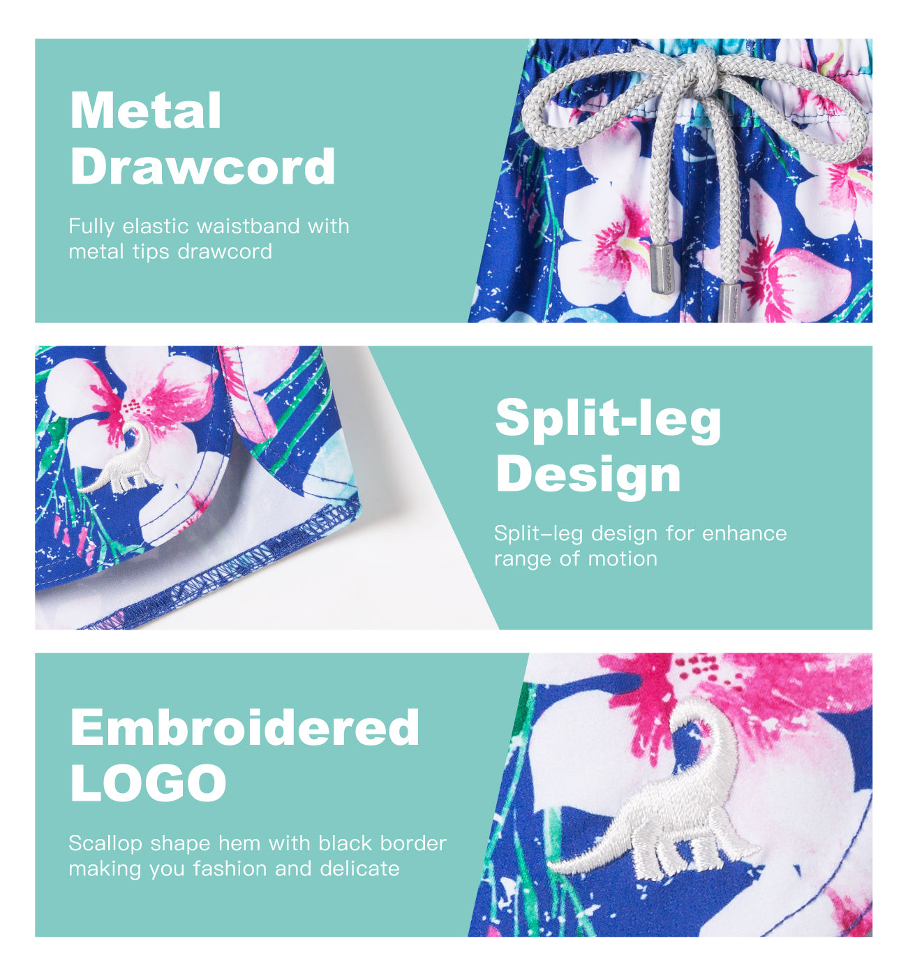 Shorts de baño elásticos en 4 direcciones con estampado de flor de durazno de 3.5" para mujer