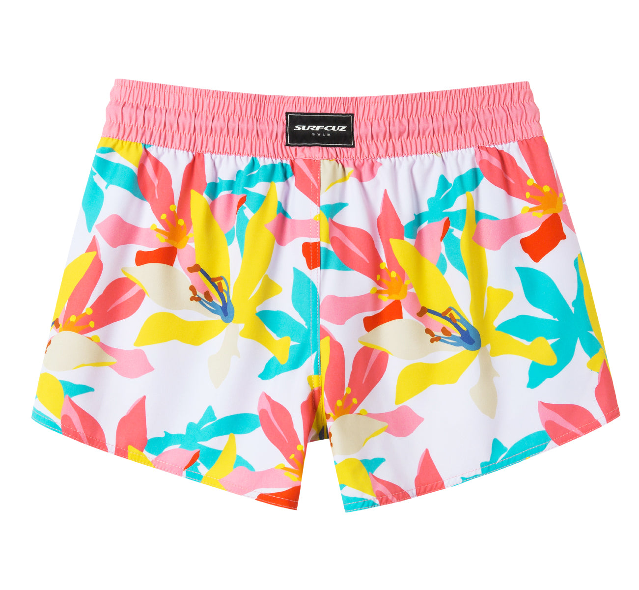 Boardshorts elásticos en 4 direcciones con estampado floral rosa de 3.5" para mujer