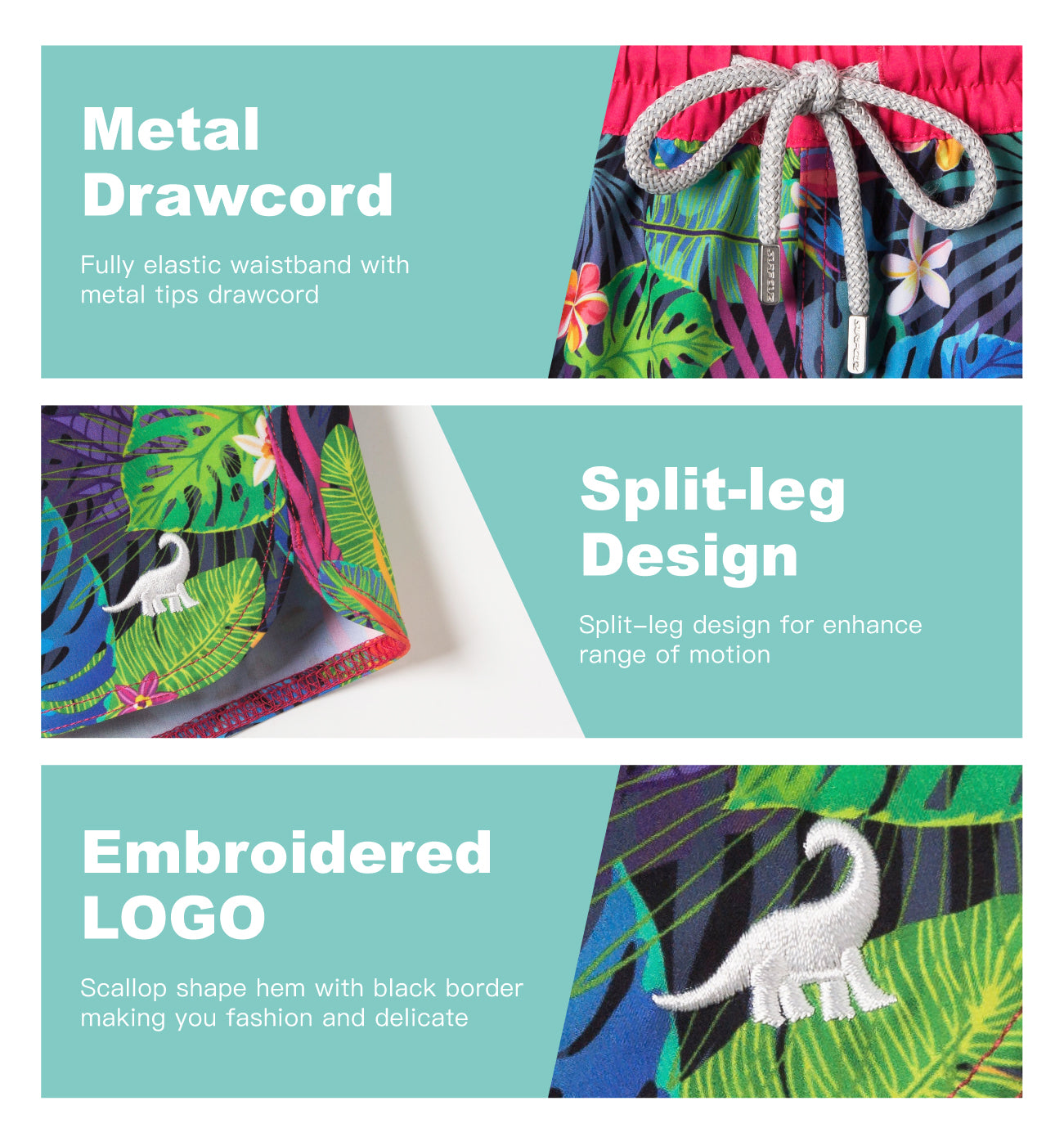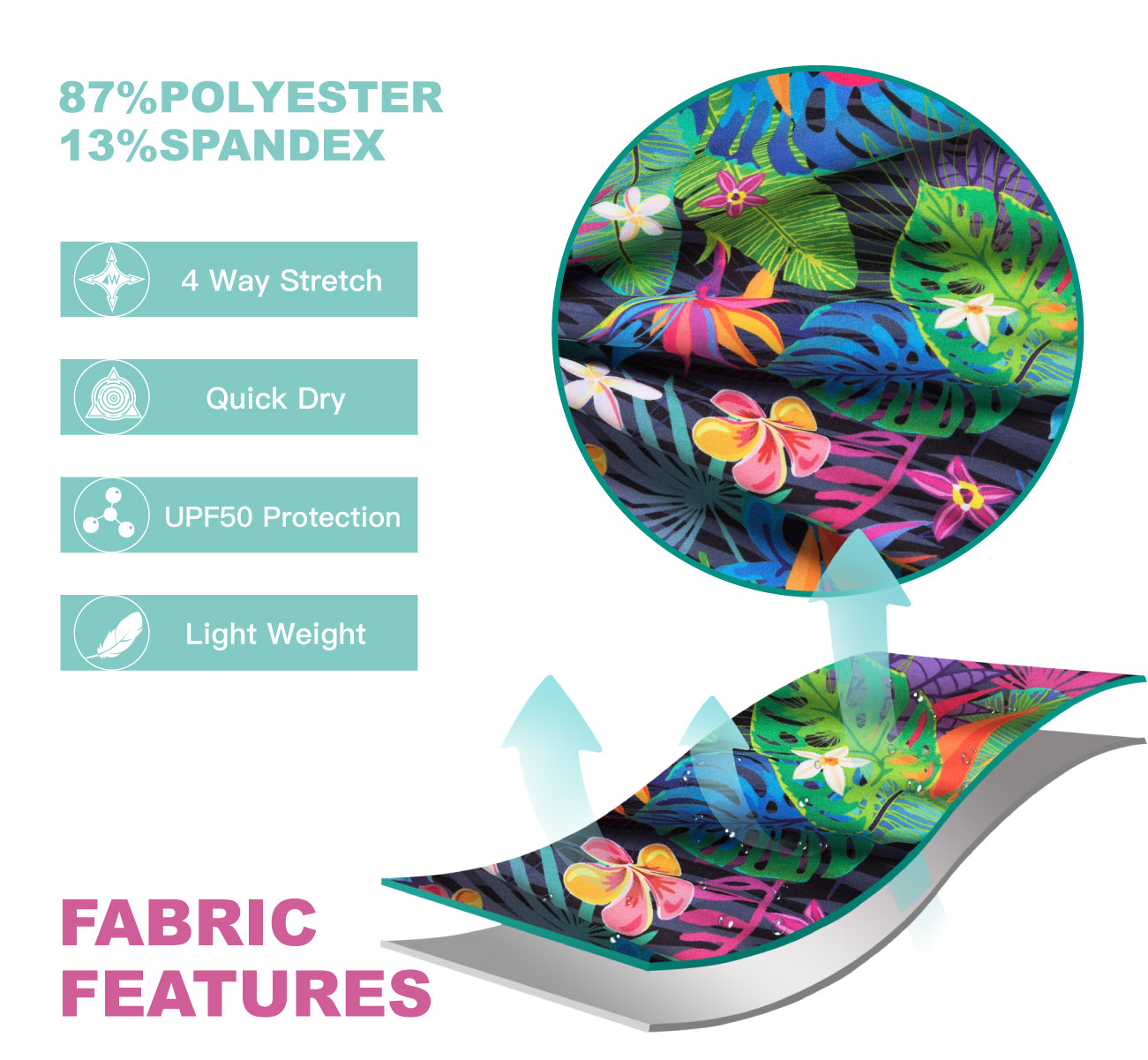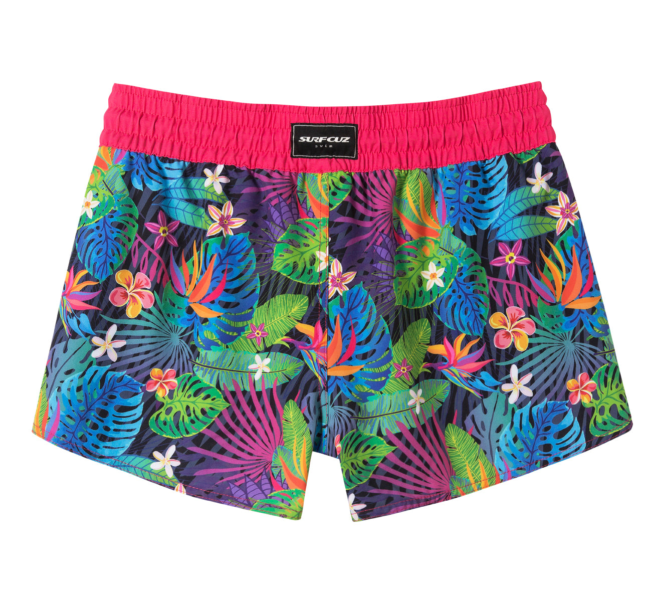 Bañador elástico en 4 direcciones rosa con hojas tropicales de 3.5" para mujer
