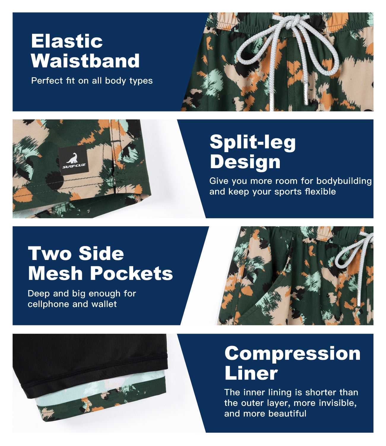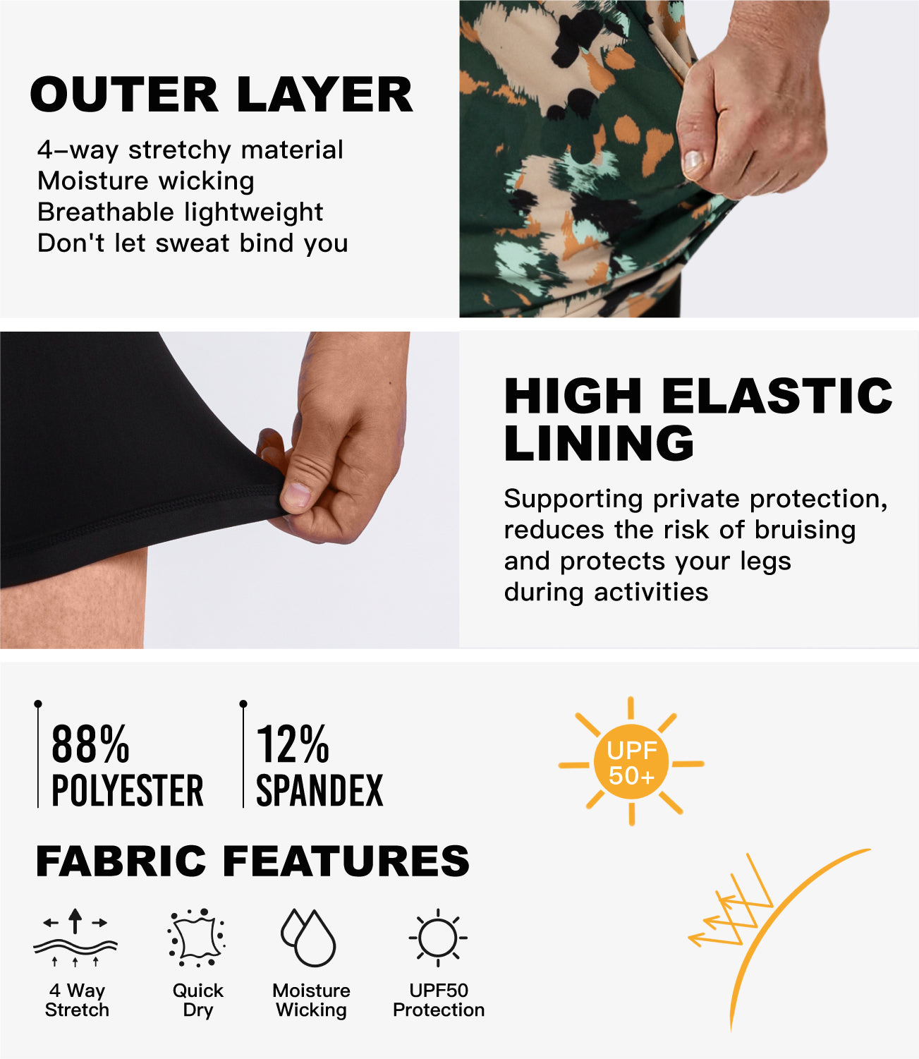 Shorts de gimnasia 2 en 1 elásticos de camuflaje verde