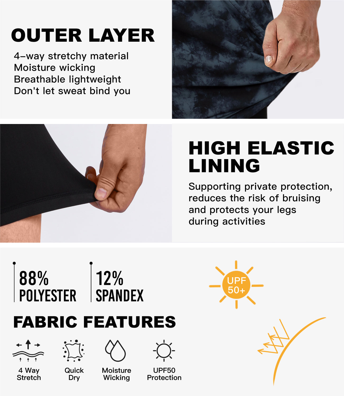 Pantalones cortos de gimnasia 2 en 1 elásticos con efecto tie-dye