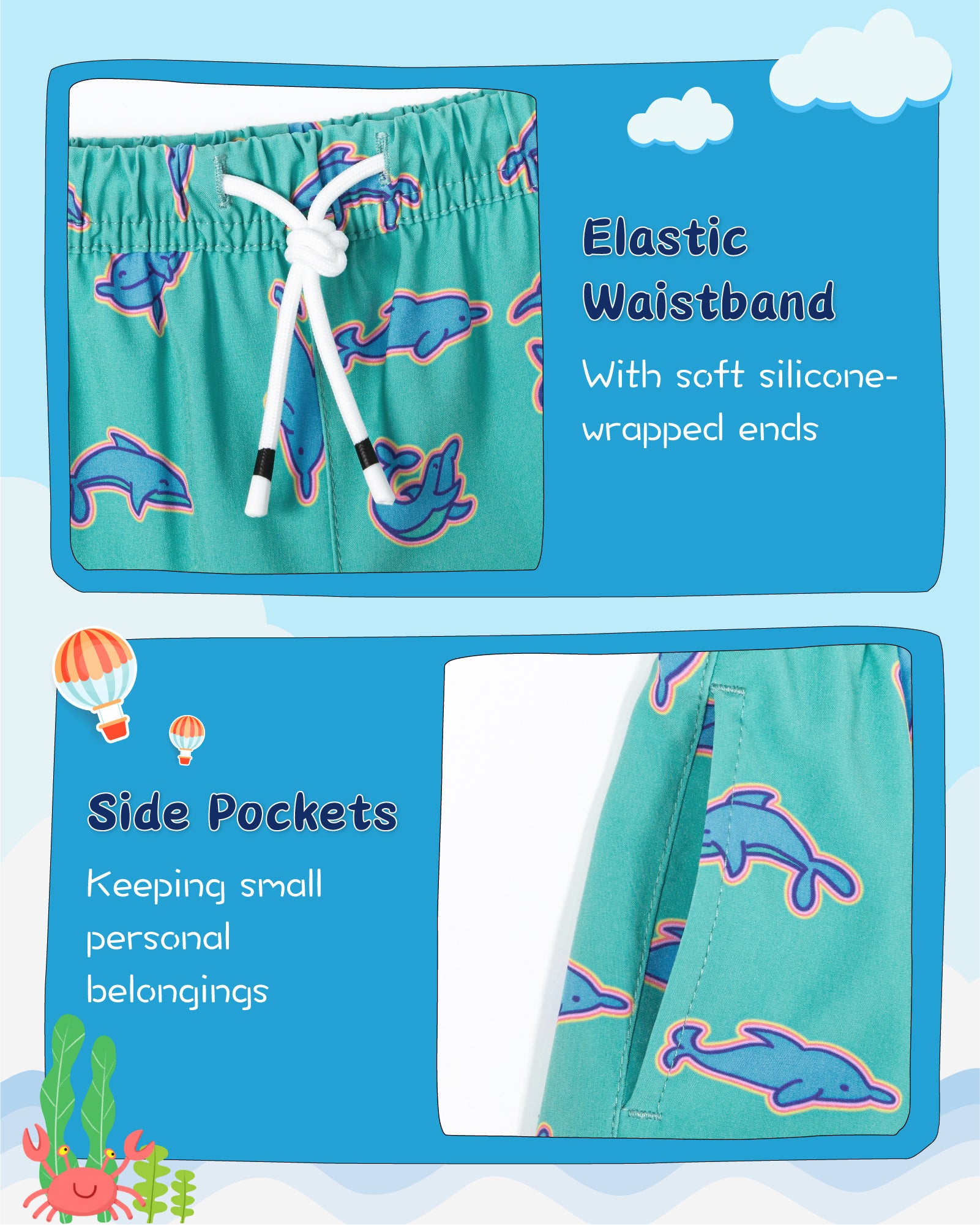 - Encajar: La cintura elástica fácil de poner y el cordón ofrecen un ajuste cómodo y ajustable.