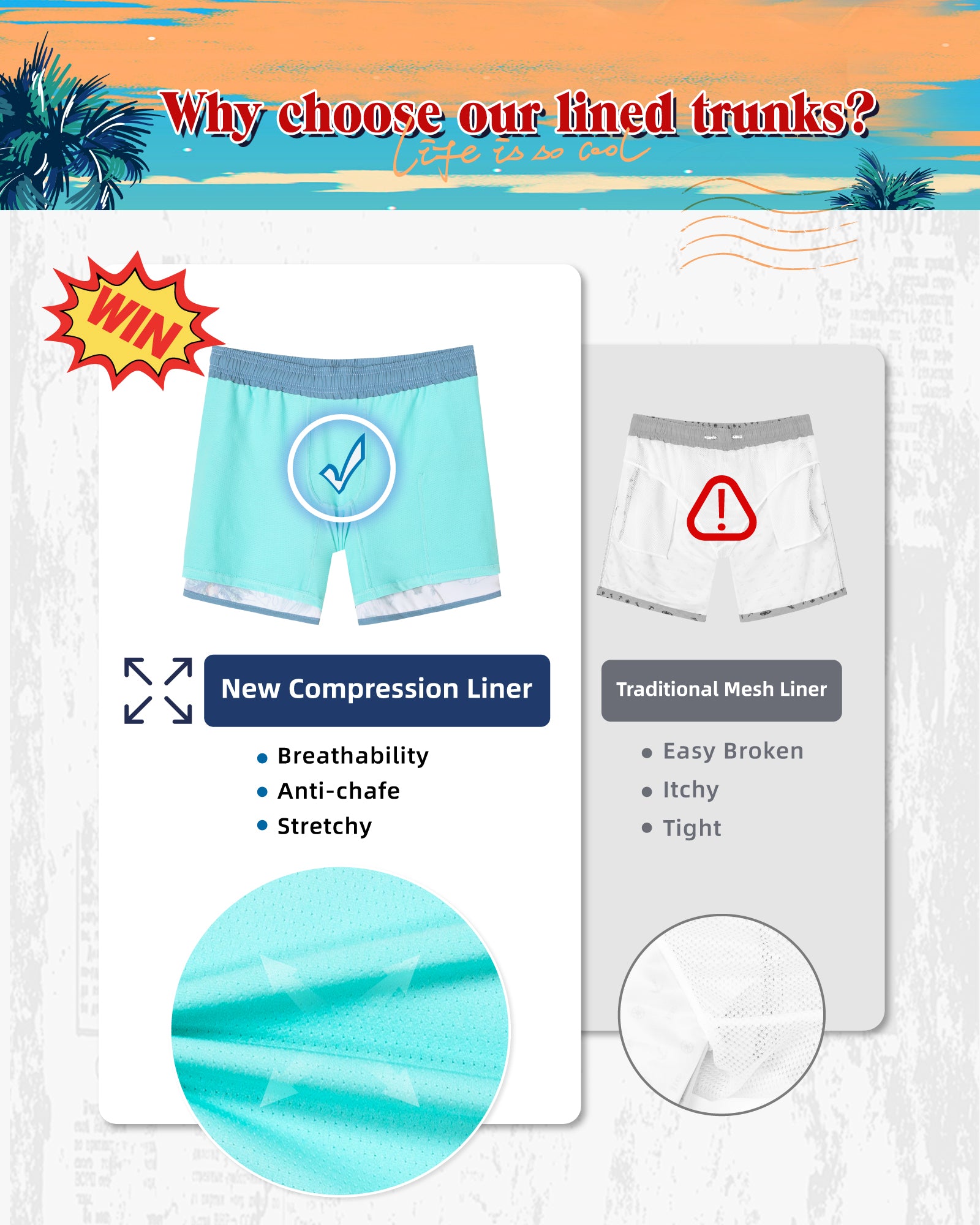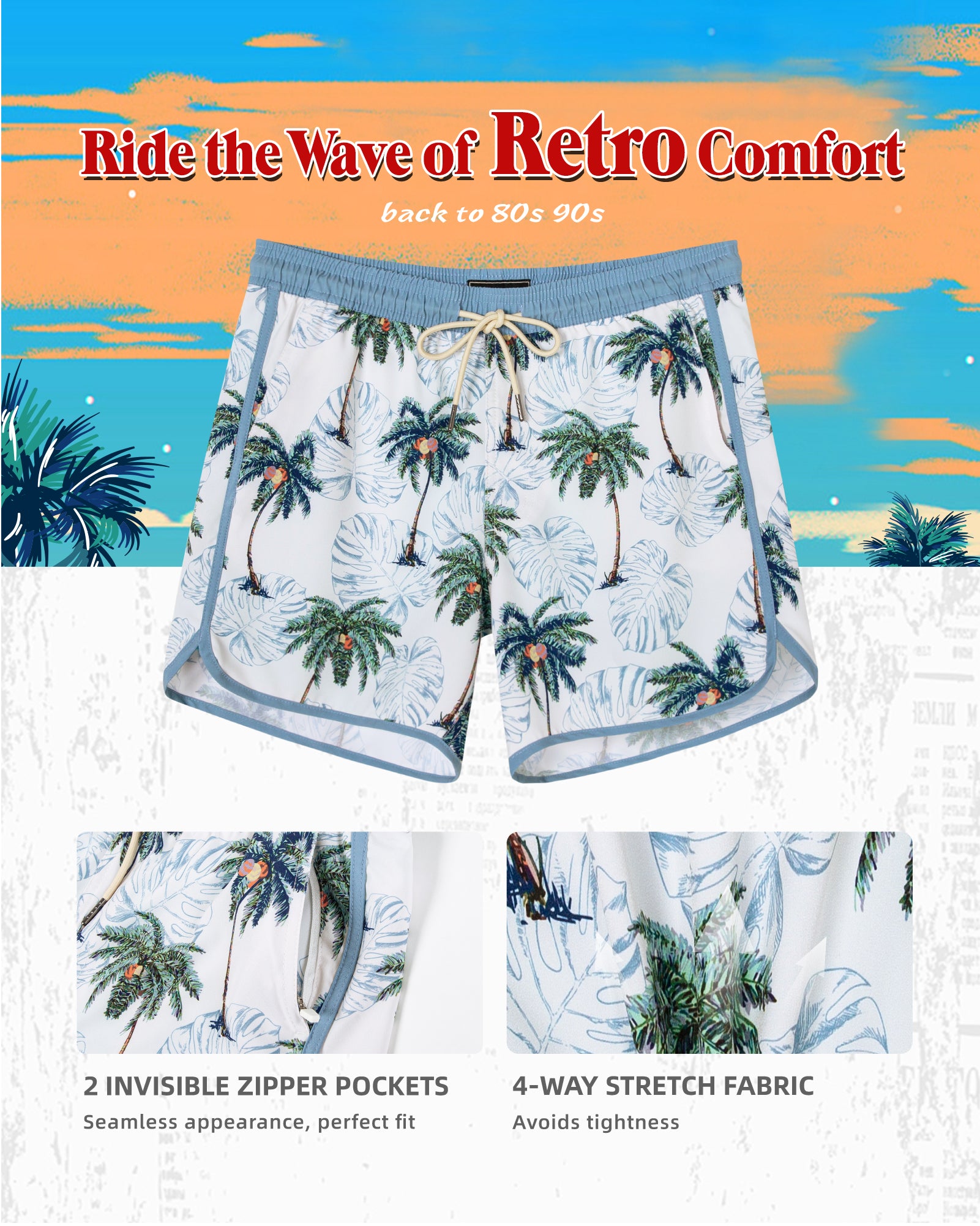 Men's 5 Inch Stretch Lining Vintage Board Shorts