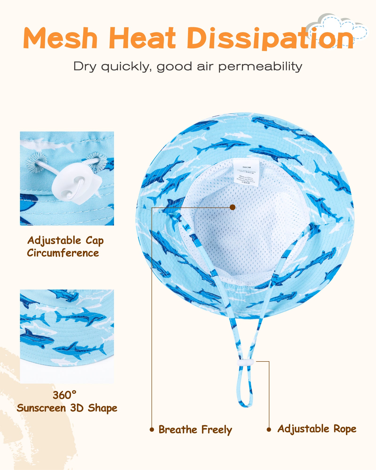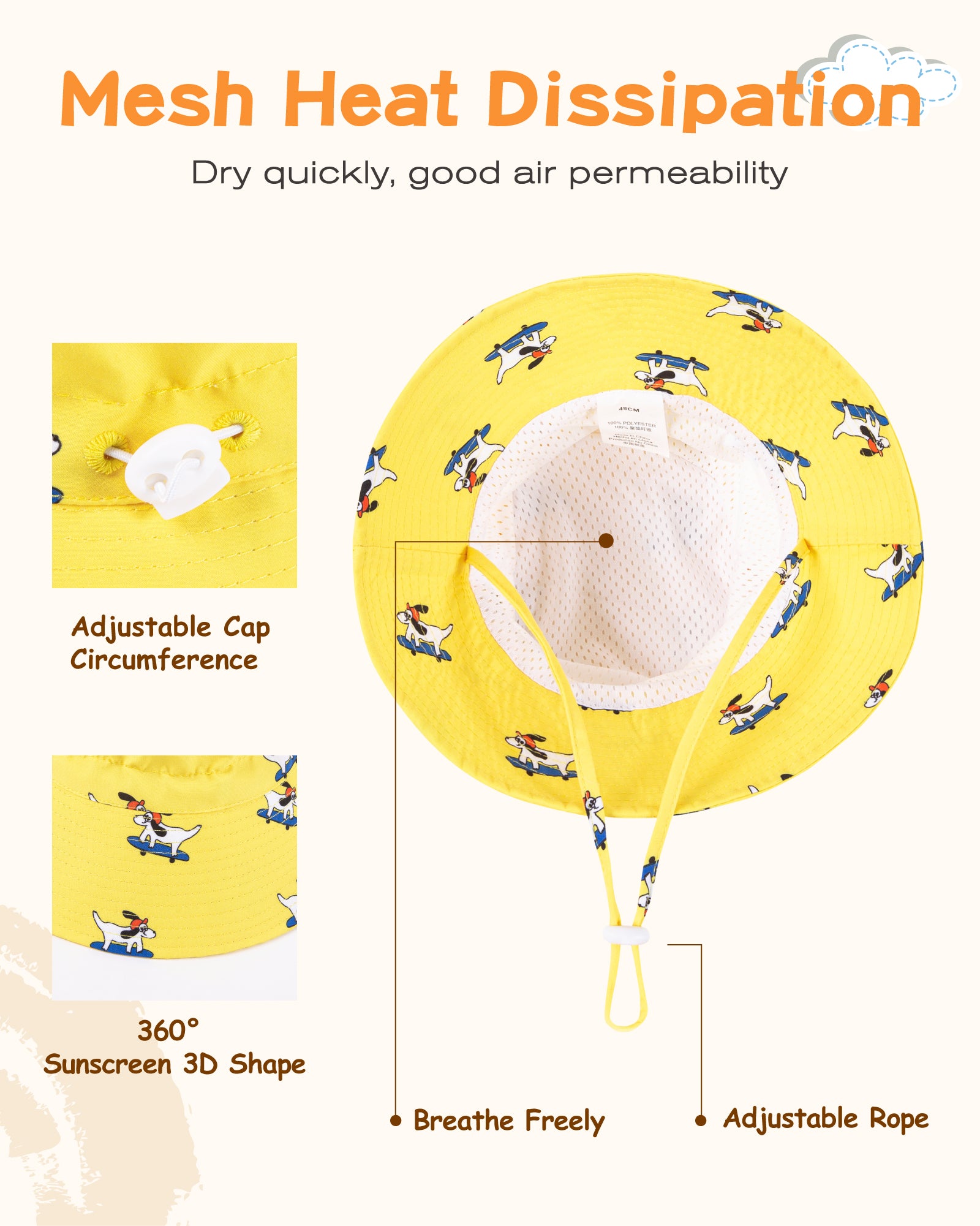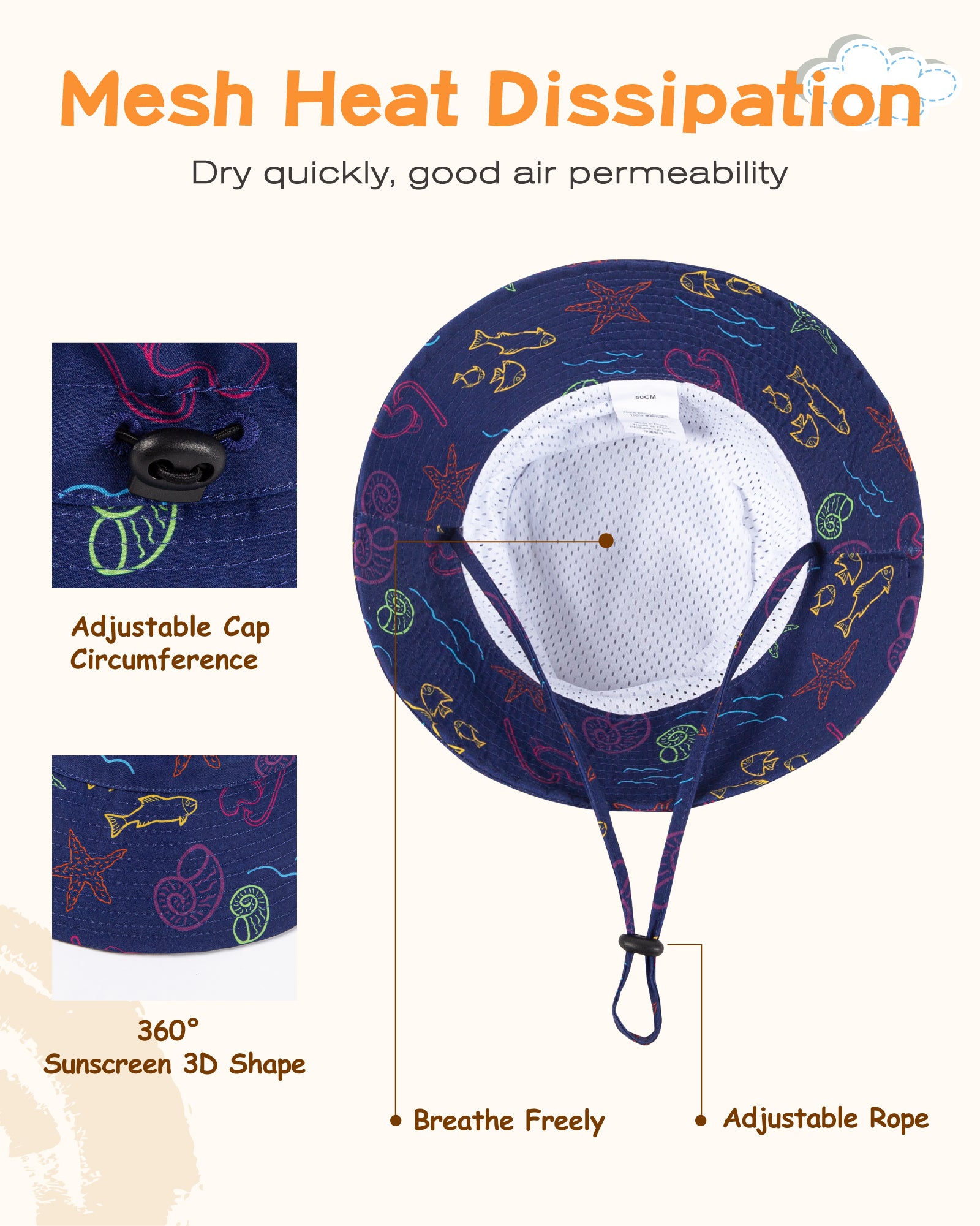 Kid's Quick-Dry Sun Hat With Adjustable Rope