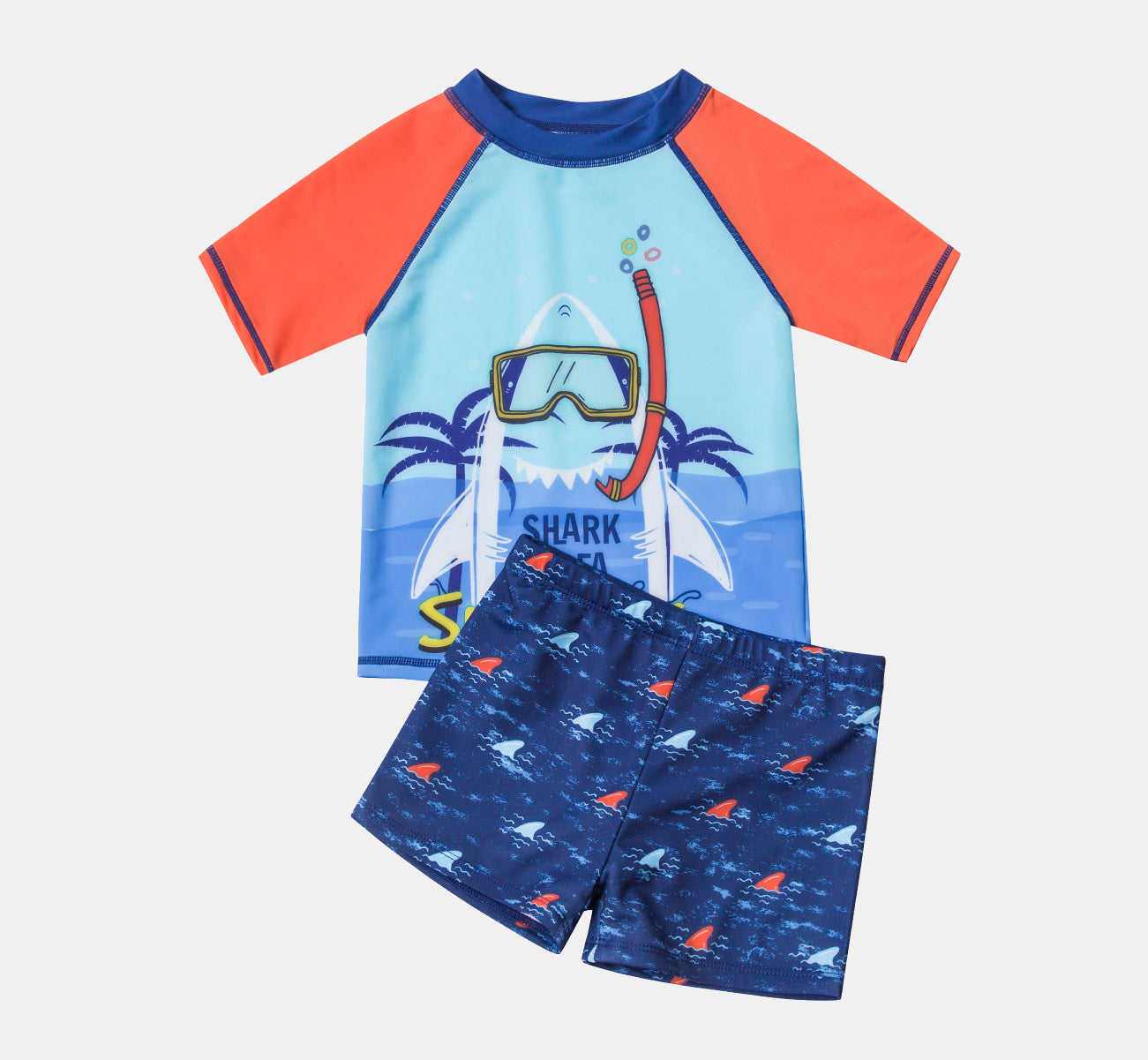 Conjuntos de trajes de baño con estampado de tiburón de buceo para niño