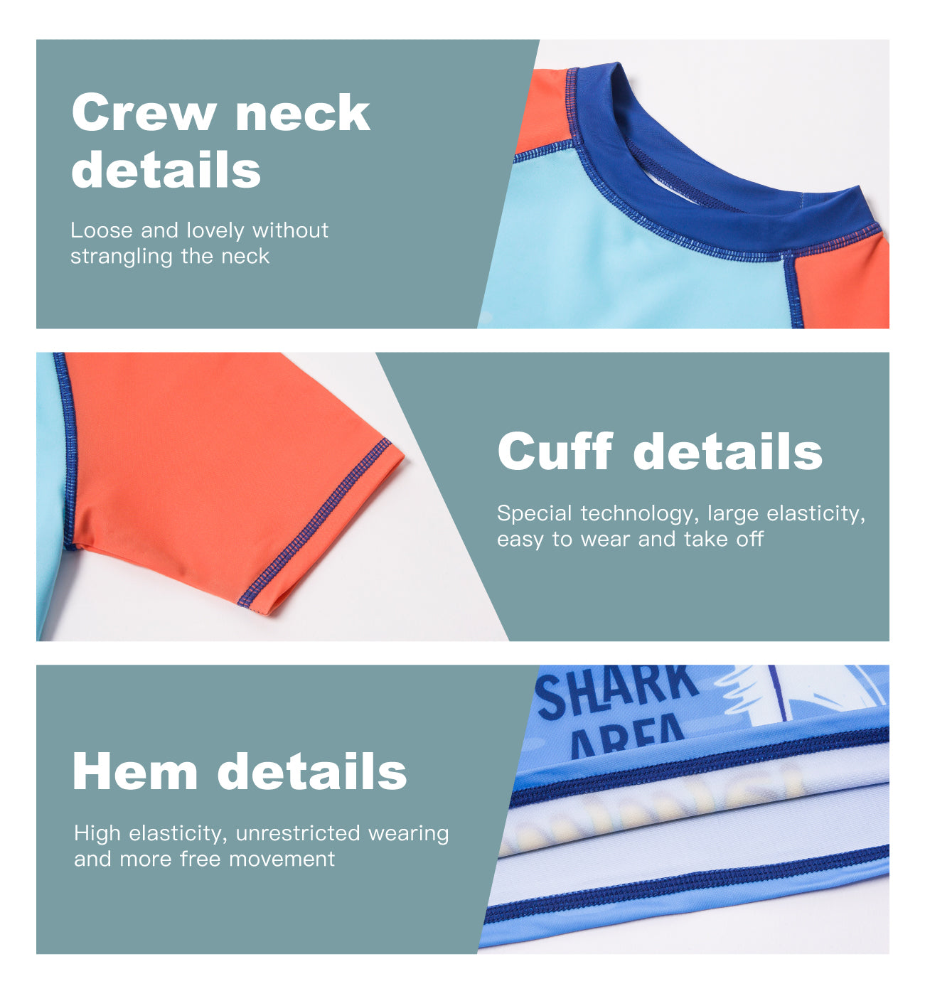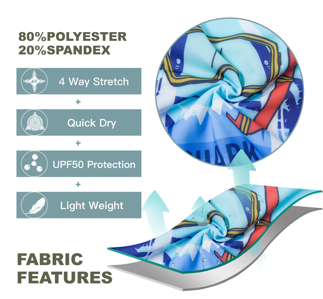 EXCELENTE PROTECCIÓN SOLAR: Las telas de los trajes de baño con protección solar para niños tienen una clasificación UPF 50+ y brindan la máxima protección solar UV al bloquear el 98% de los rayos solares UVA + UVB, húmedos o secos.