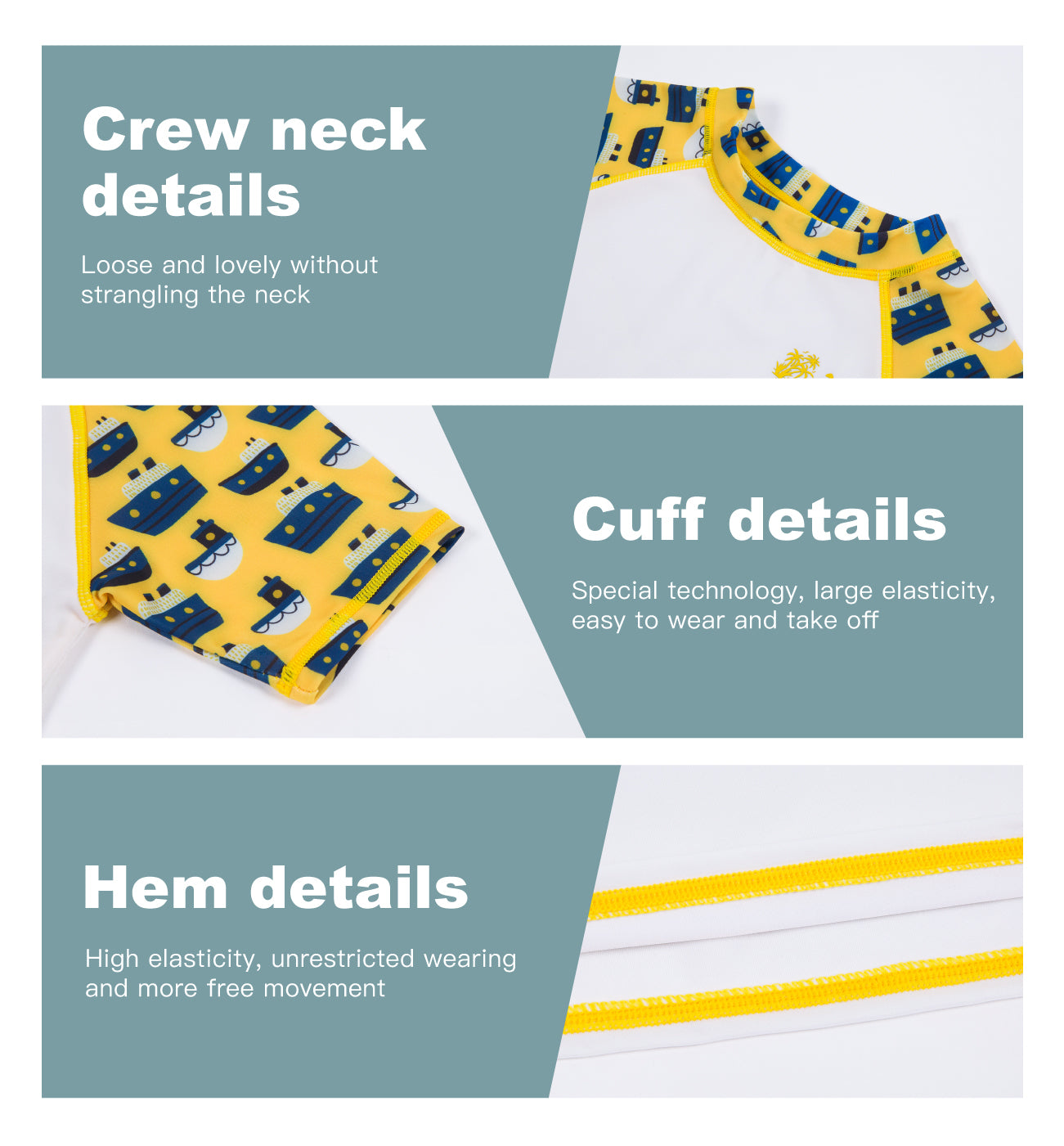 EXCELENTE PROTECCIÓN SOLAR: Las telas de los trajes de baño con protección solar para niños tienen una clasificación UPF 50+ y brindan la máxima protección solar UV al bloquear el 98% de los rayos solares UVA + UVB, húmedos o secos.