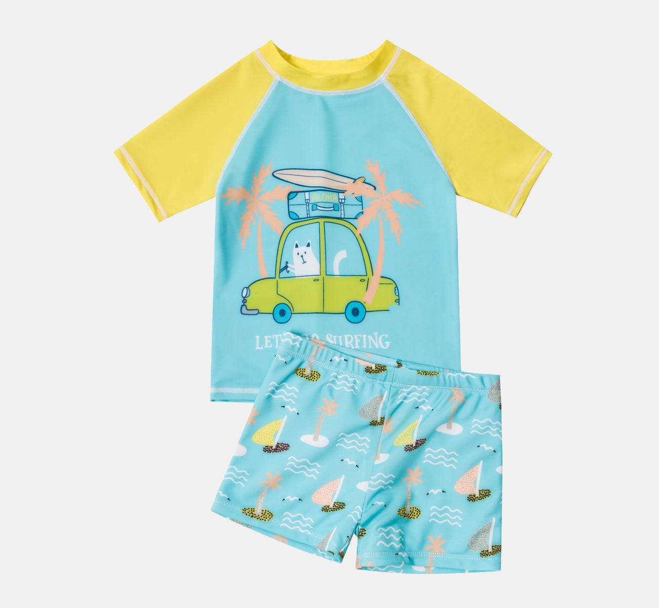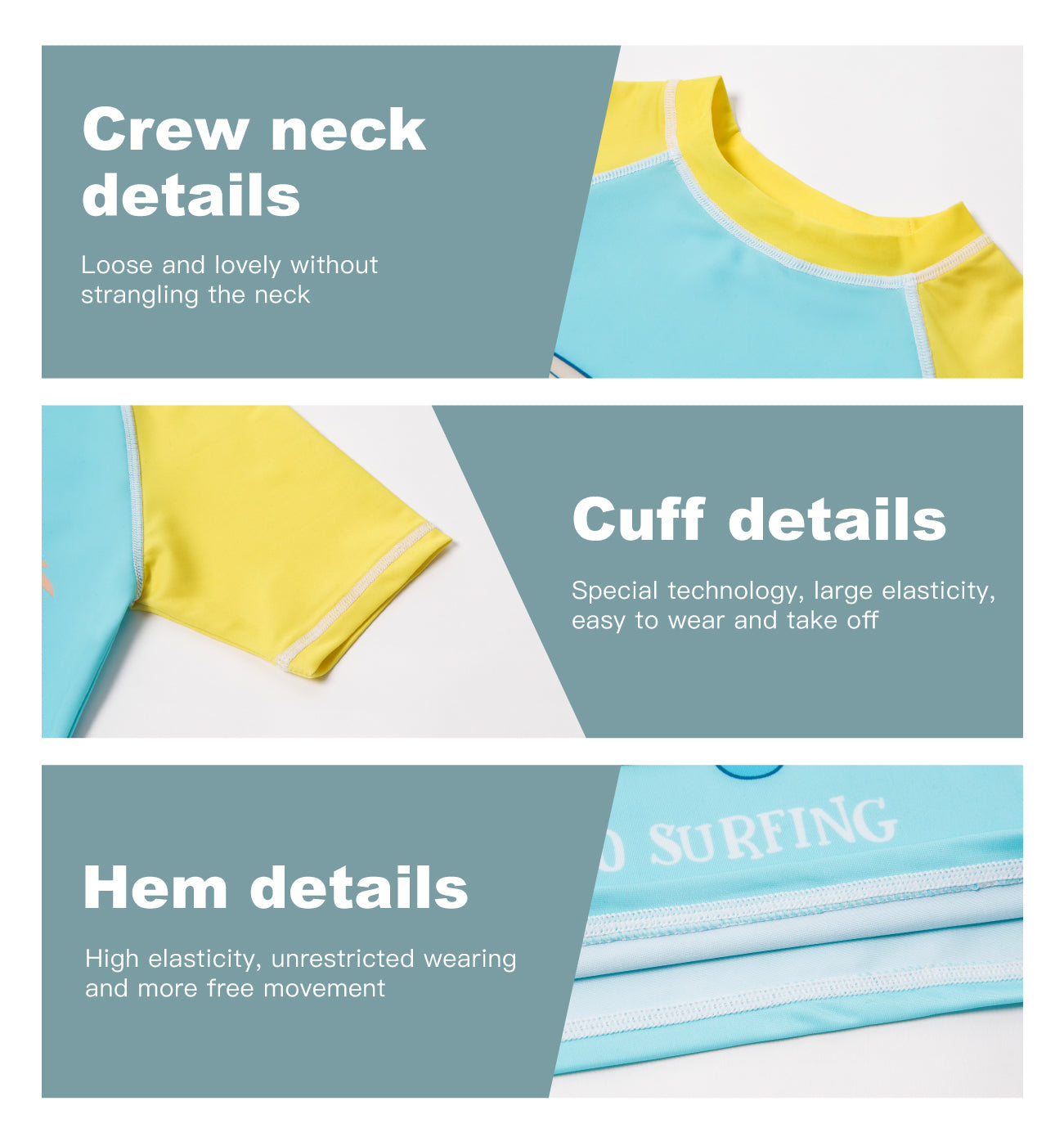 EXCELENTE PROTECCIÓN SOLAR: Las telas de los trajes de baño con protección solar para niños tienen una clasificación UPF 50+ y brindan la máxima protección solar UV al bloquear el 98% de los rayos solares UVA + UVB, húmedos o secos.