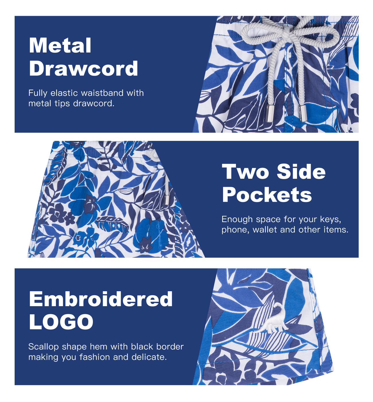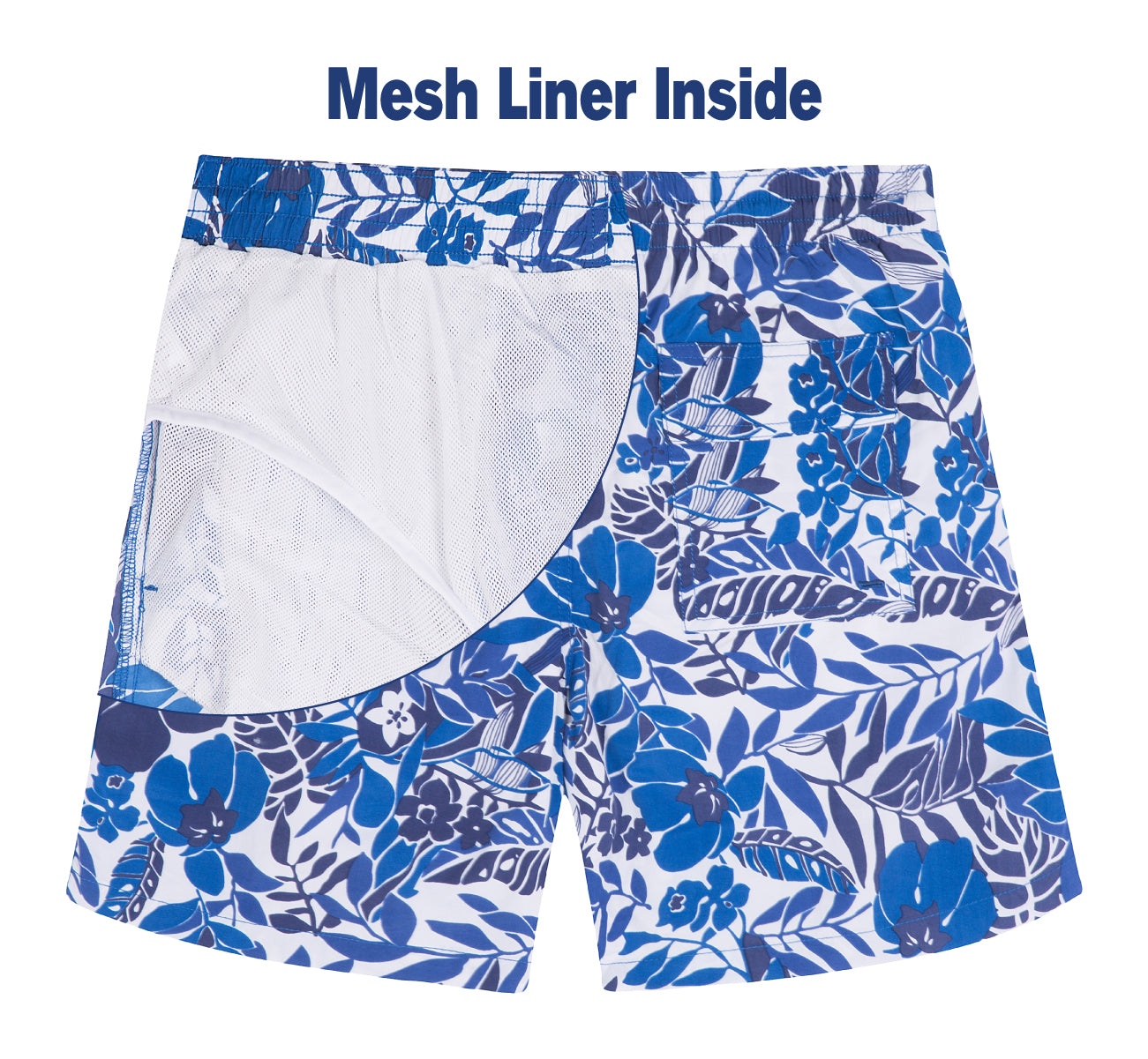 Bañador de secado rápido con estampado de hojas tropicales azules de 7" para hombre