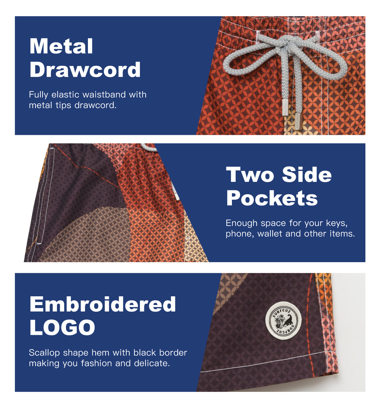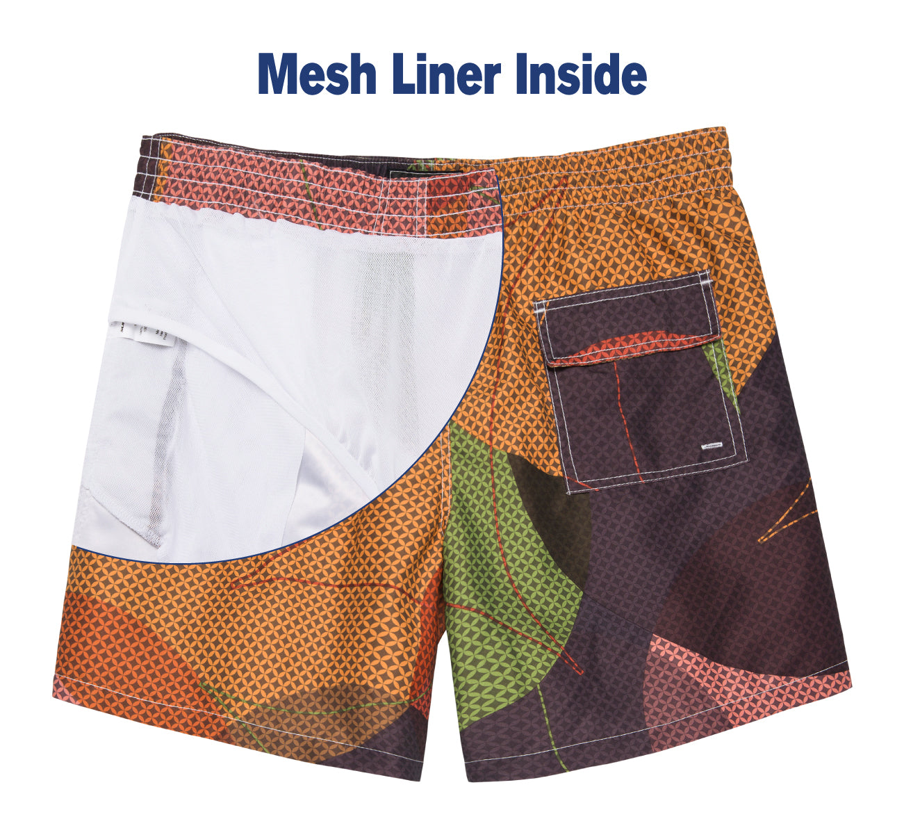 Bañador de secado rápido con estampado geométrico naranja rojo de 7" para hombre