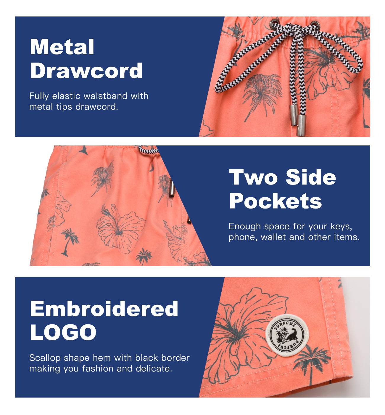 Bañador de secado rápido con estampado de plantas rojas y naranjas de 7" para hombre