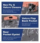Bolsillo: Dos bolsillos laterales + bolsillo trasero con solapa de velcro