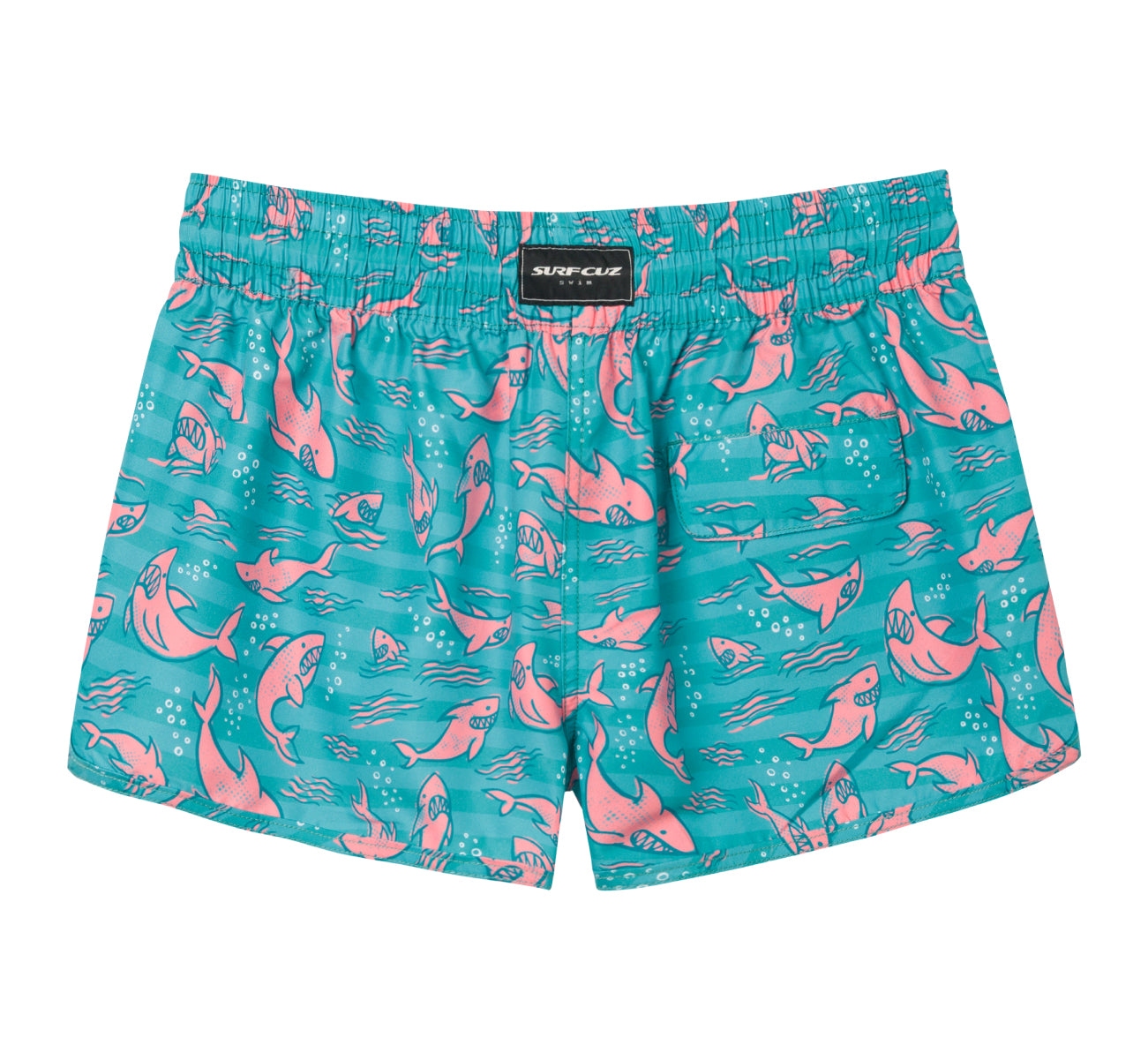 Boardshorts de secado rápido con estampado de tiburones de 2.5" para mujer