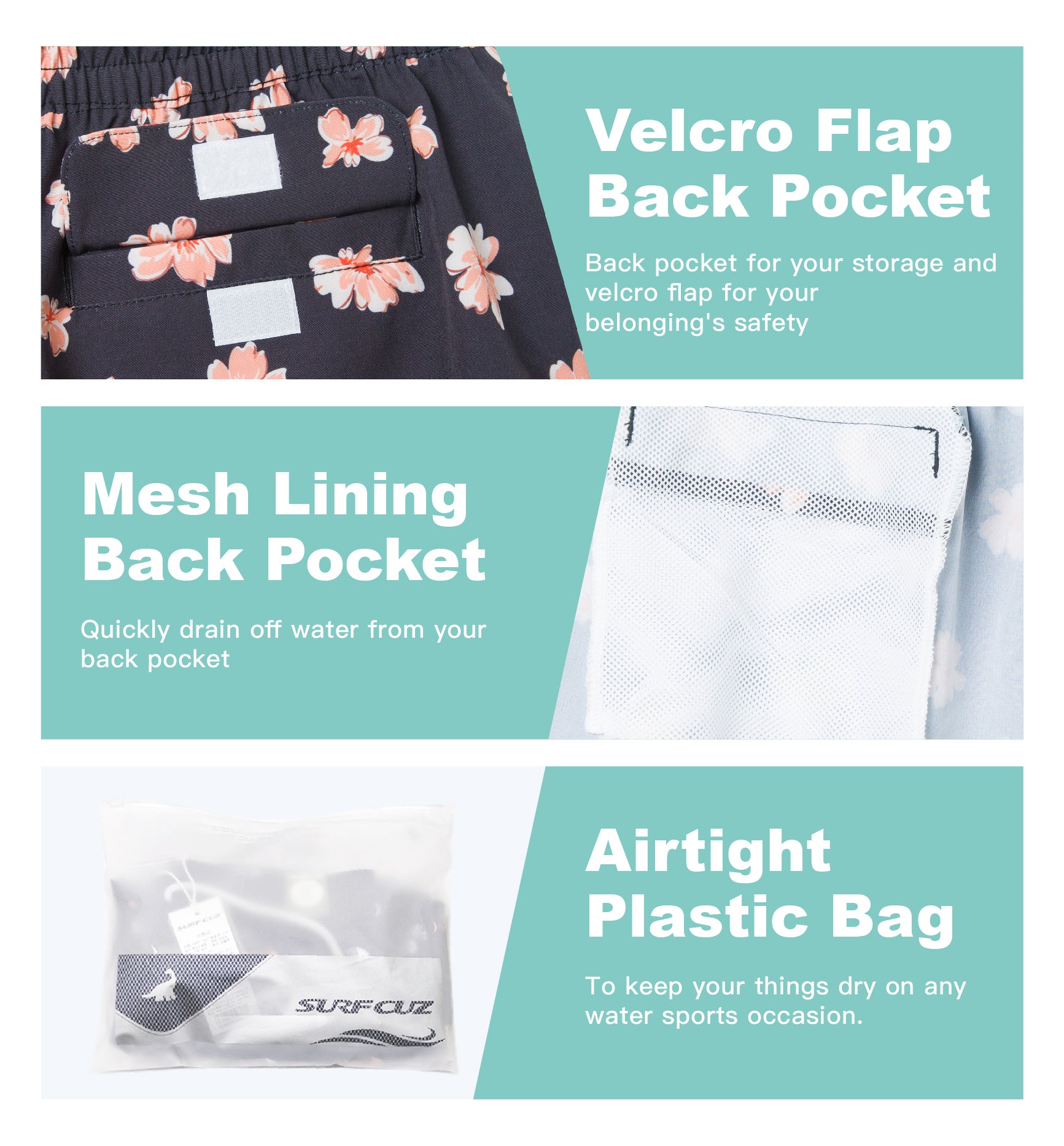 Boardshorts elásticos en 4 direcciones con estampado floral de 2.5" para mujer