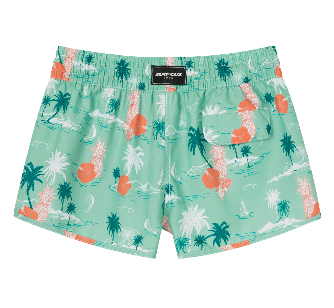 Boardshorts de secado rápido con estampado Island de 2,5" para mujer