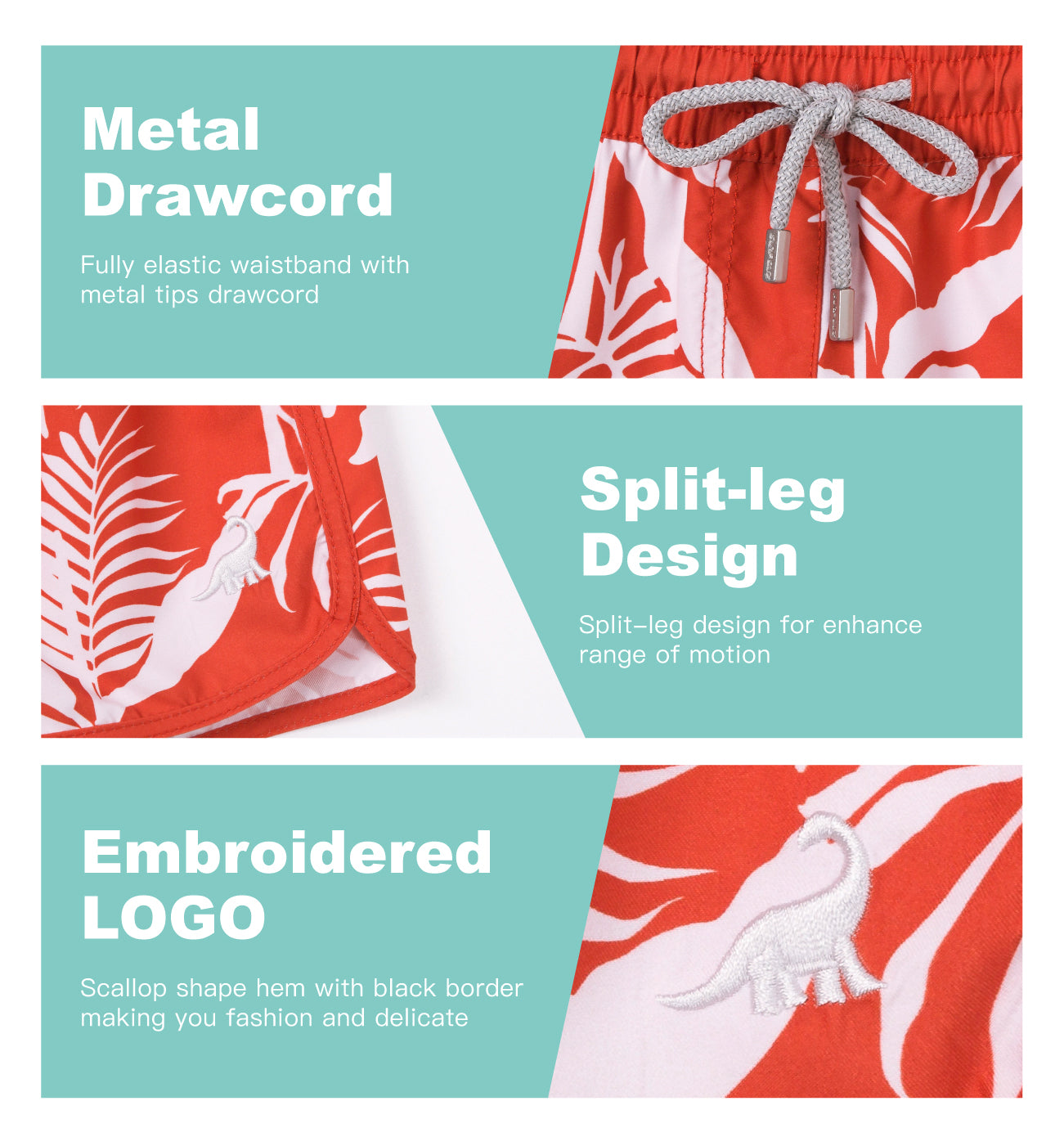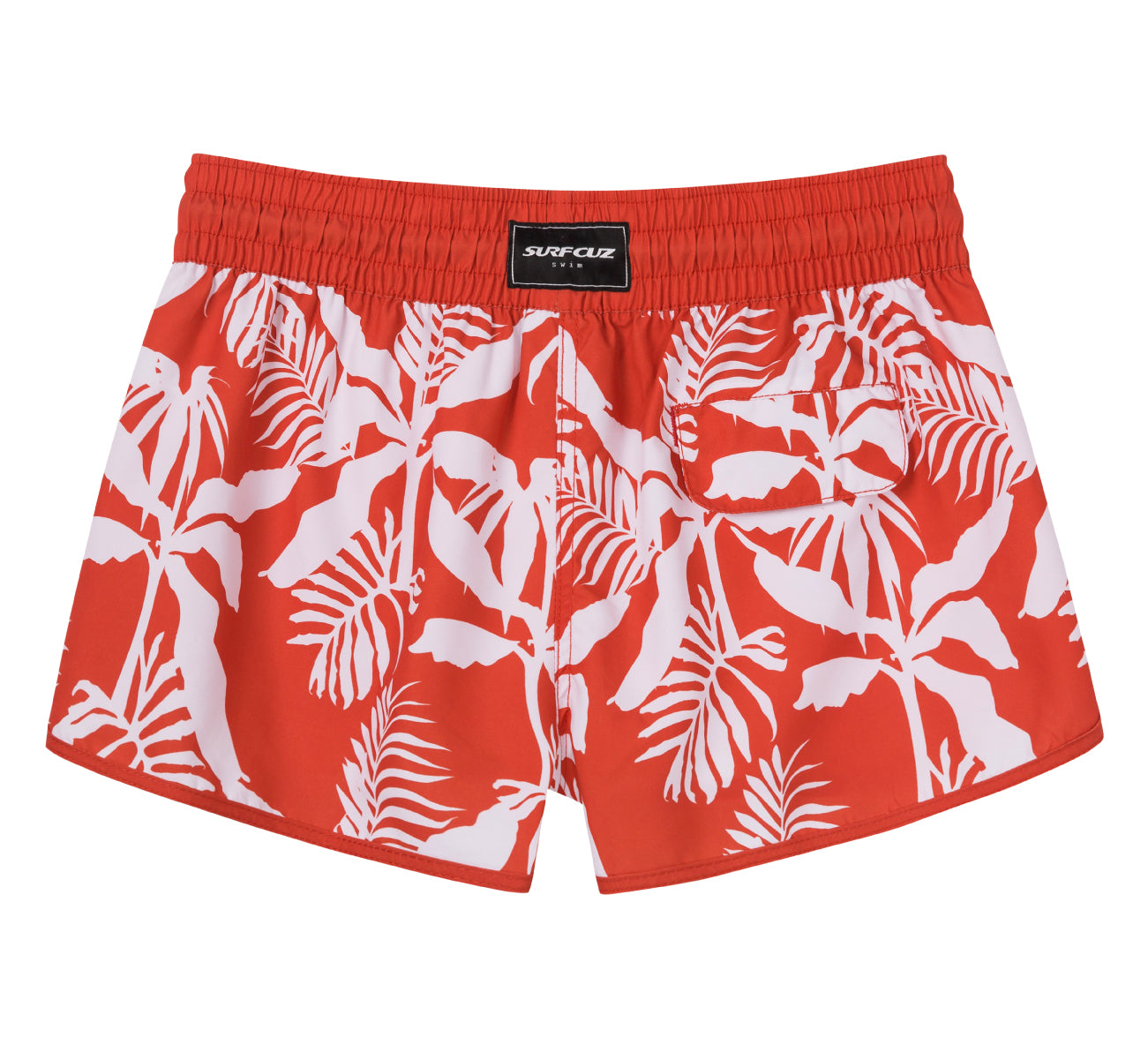 Shorts de baño de secado rápido con hojas de plátano rojo de 2,5" para mujer