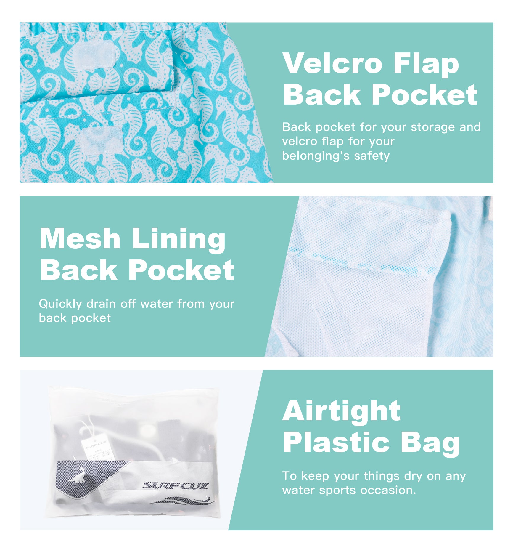 Boardshorts de secado rápido con estampado de caballitos de mar de 2,5" para mujer