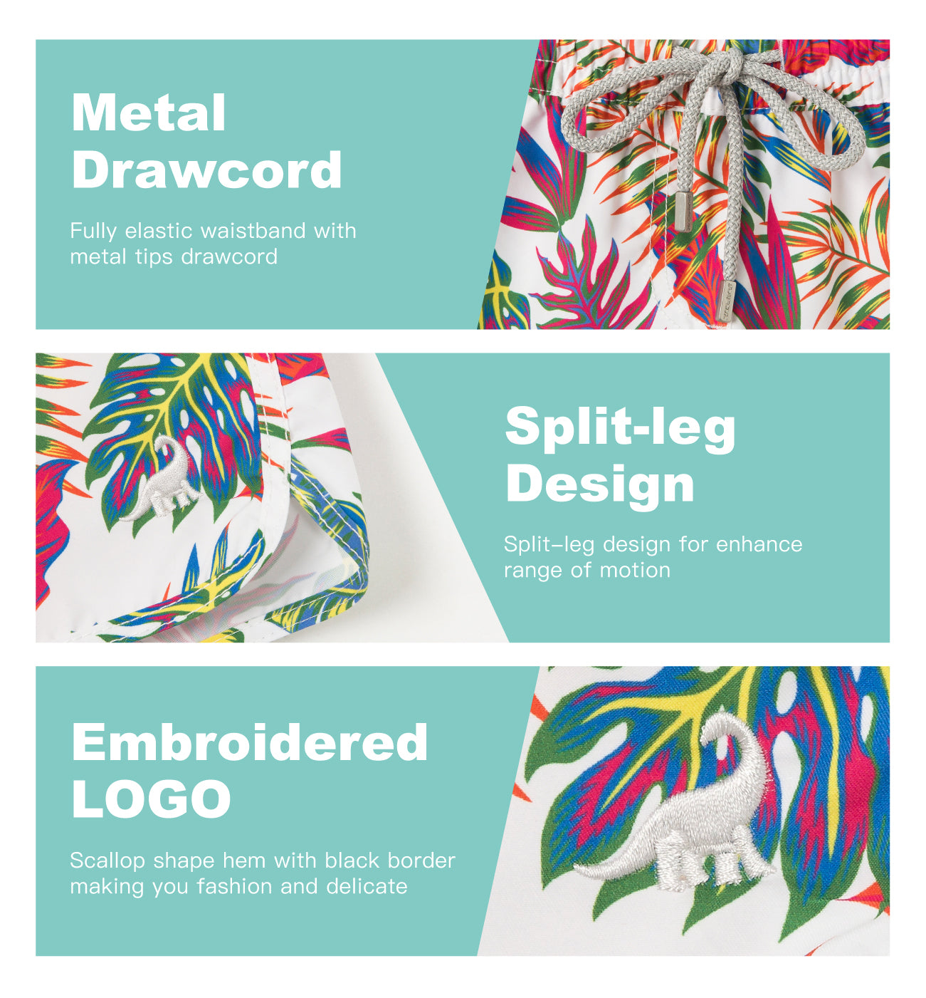 Boardshorts de secado rápido con estampado de hojas tropicales de 2.5" para mujer