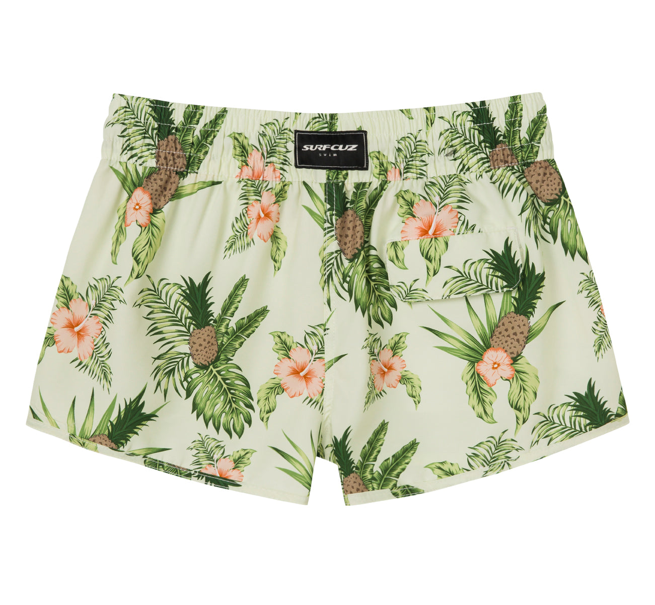 Shorts de baño de secado rápido con flores de piña tropical de 2,5" para mujer
