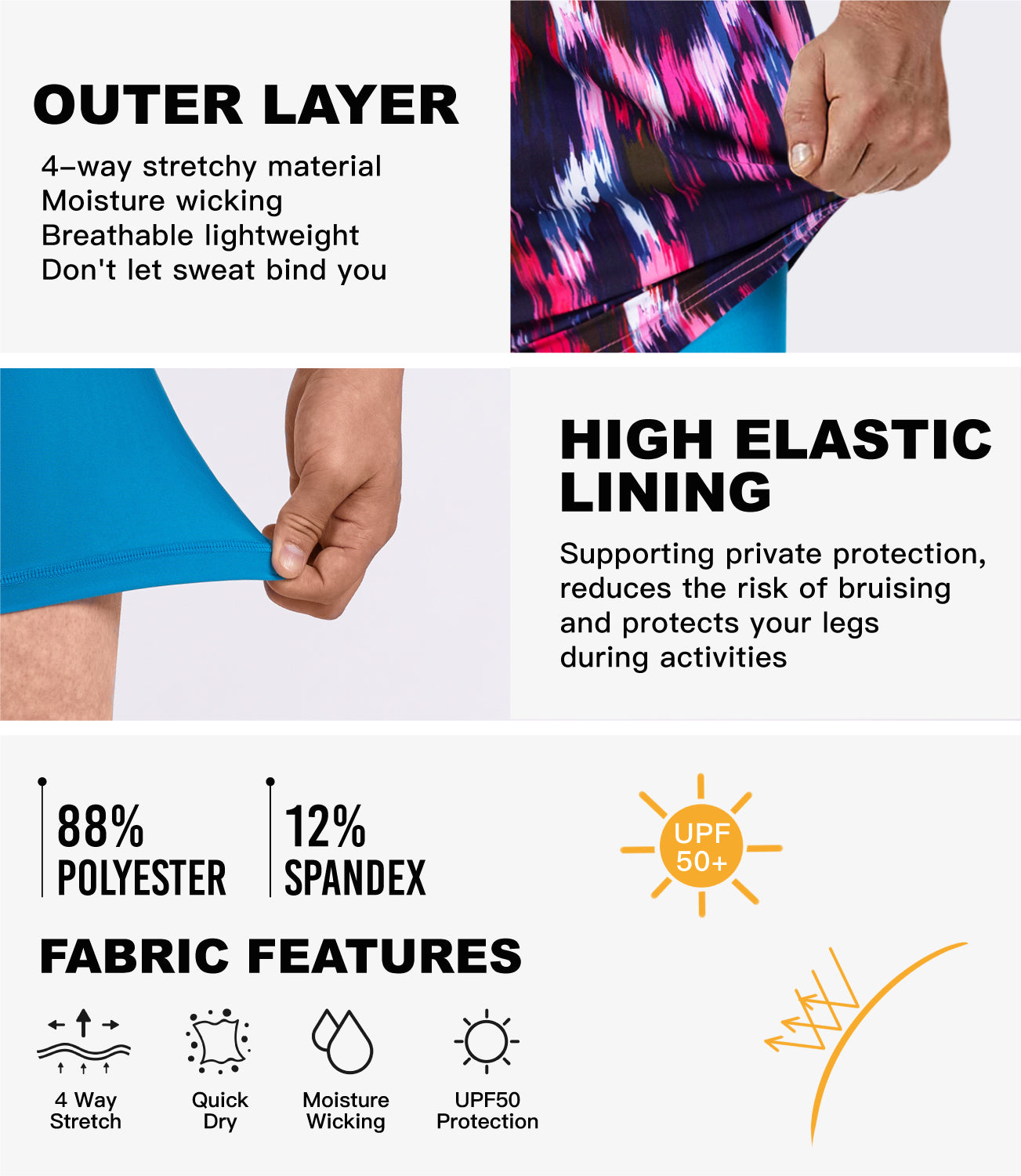 • Material: Outer Layer: 88% Polyester & 12% Spandex, Compression liner: 82% polyester & 18% spandex
