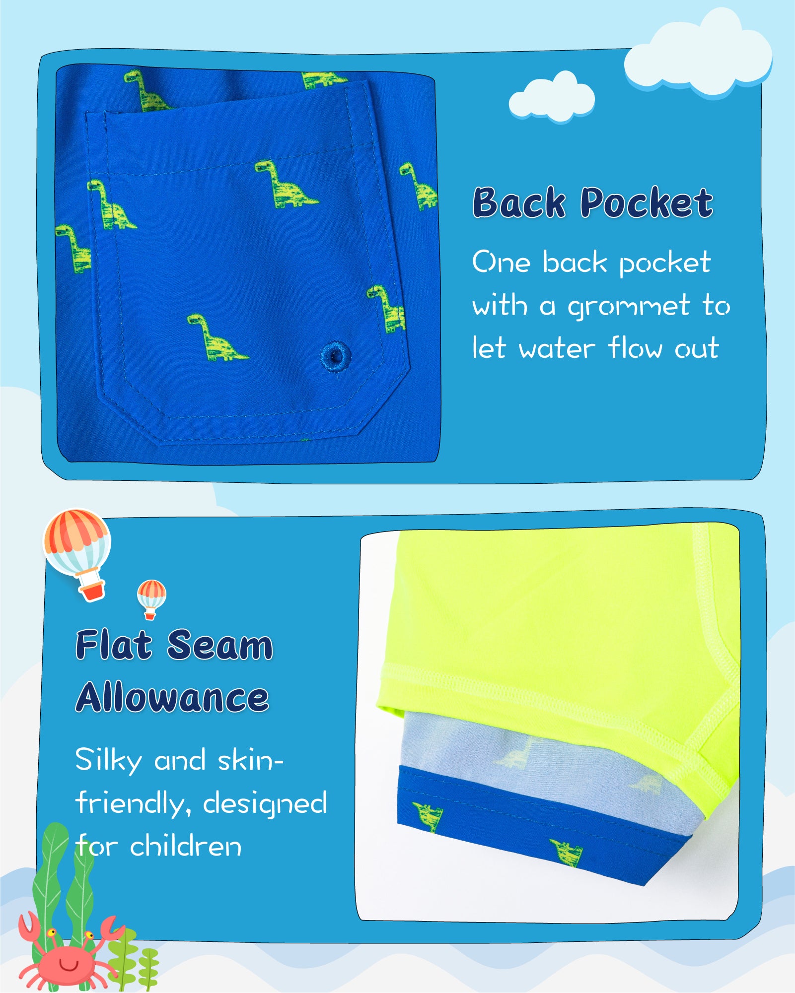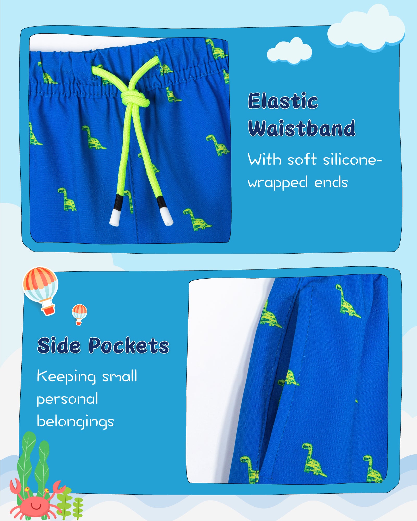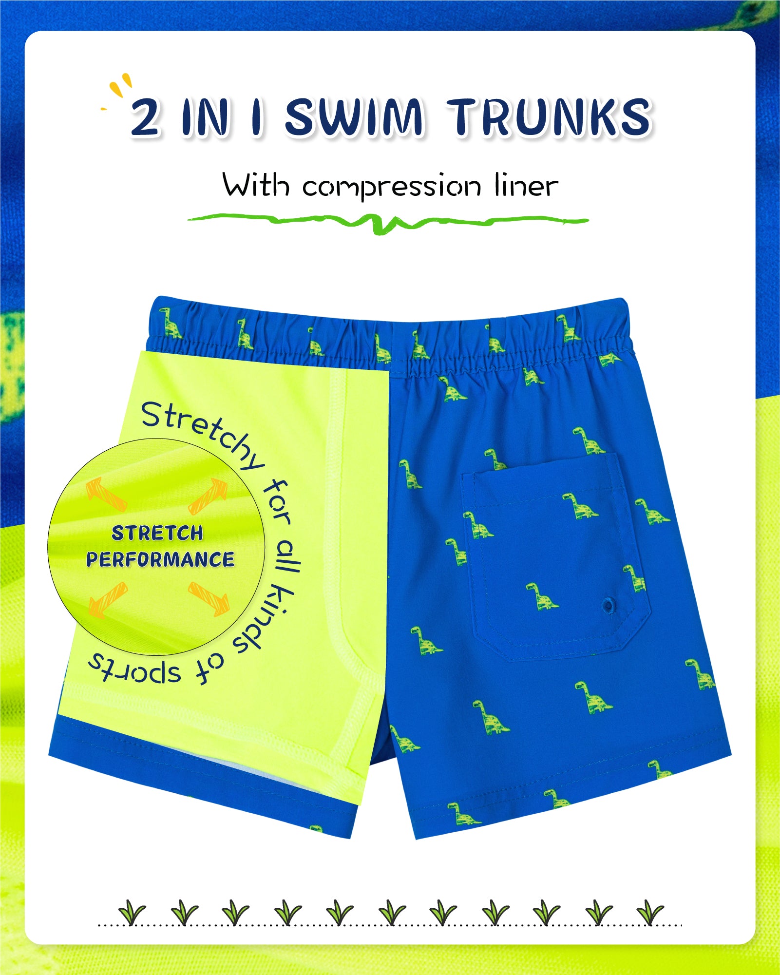 - 【Quick Dry Stretch Fabric】Kids swim trunks feature water repellent, quick-dry, breathable, and lightweight.; 4-way stretch fabric ensures snug fitting while helping improve mobility.