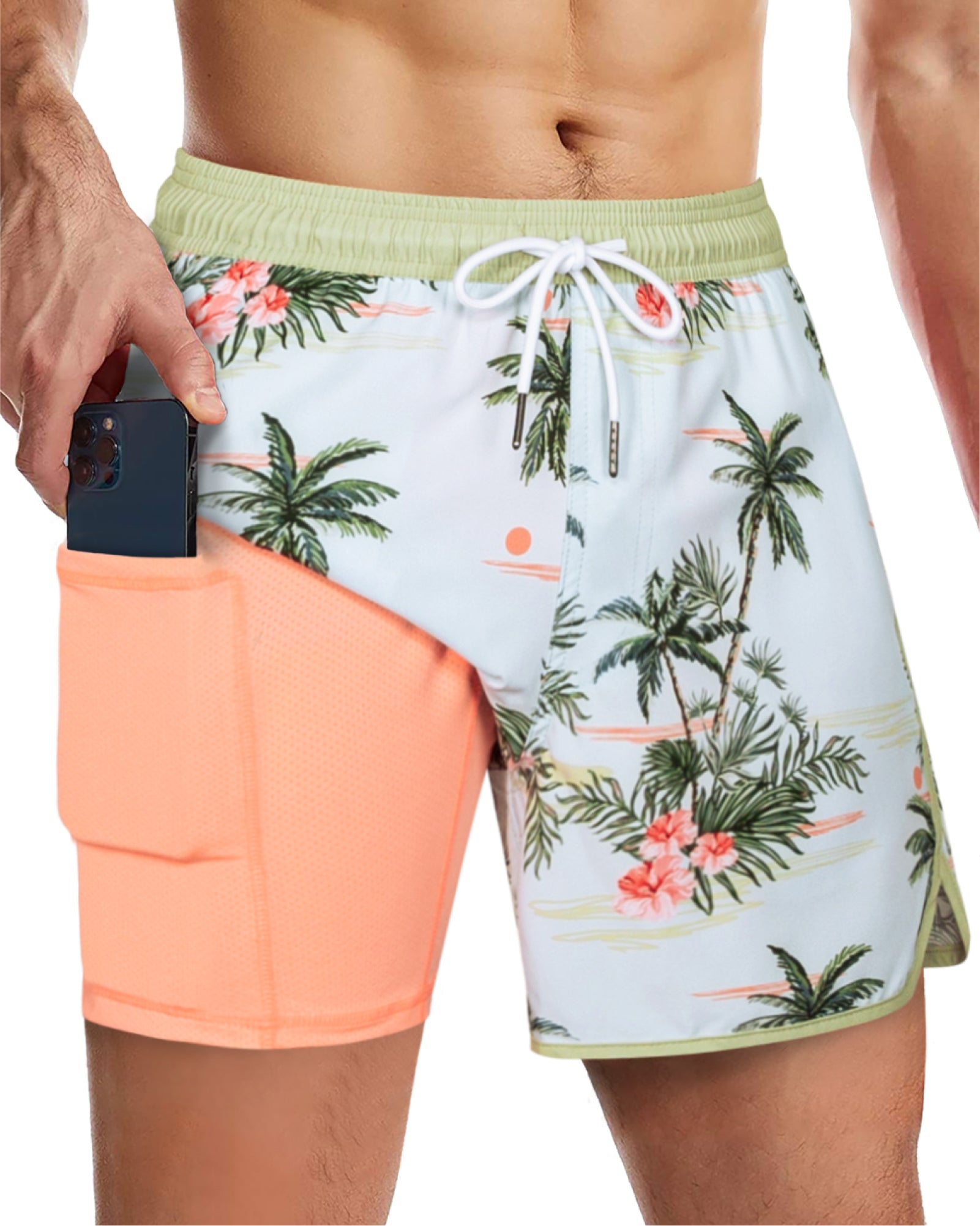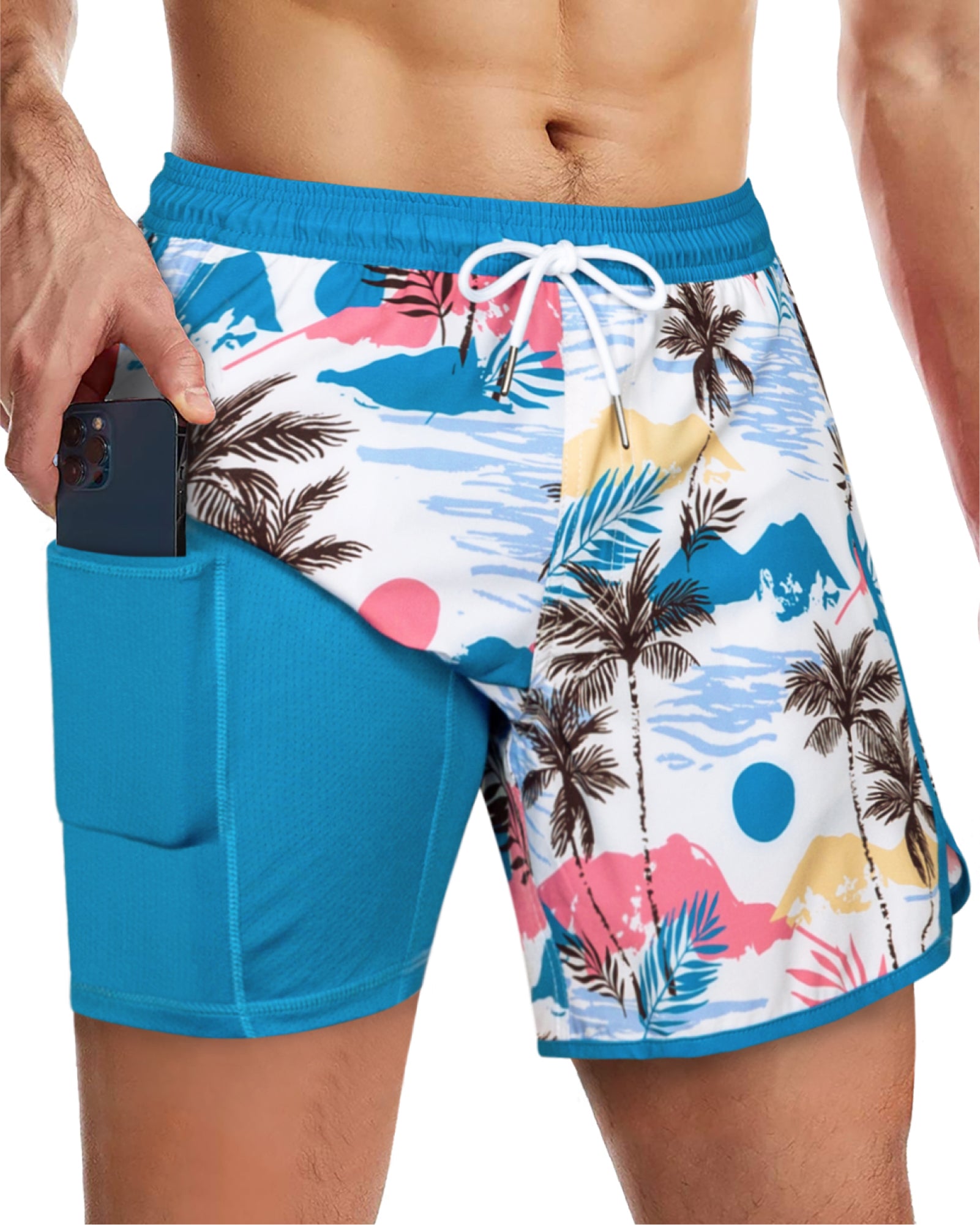 Men's 5 Inch Quick-Dry Board Shorts with Stretch Lining