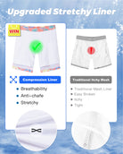 A unique wave texture trunk with a built-in mesh boxer brief liner