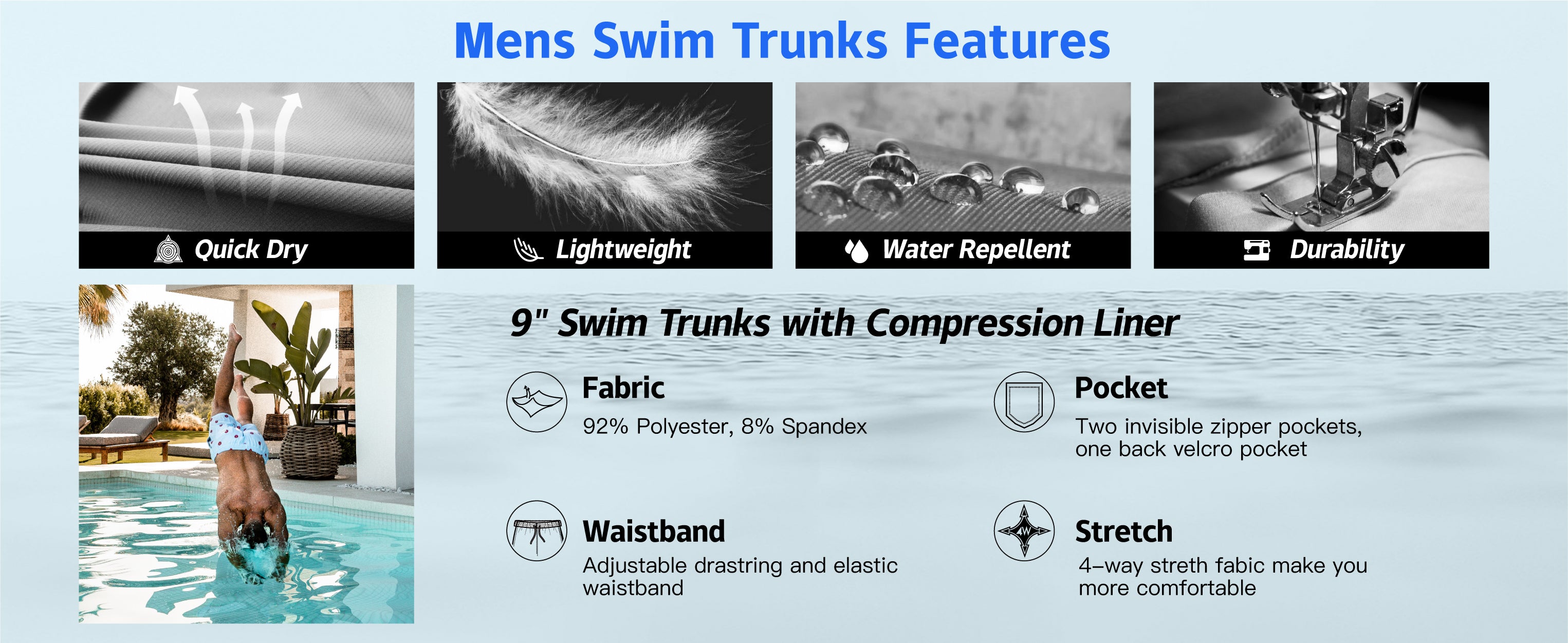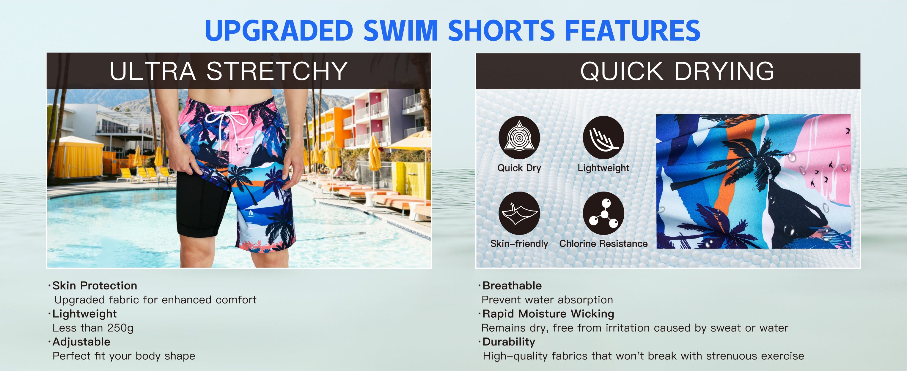 Surfcuz Men’s 9-Inch 2-in-1 Swim Trunks – For Performance in and Out of Water