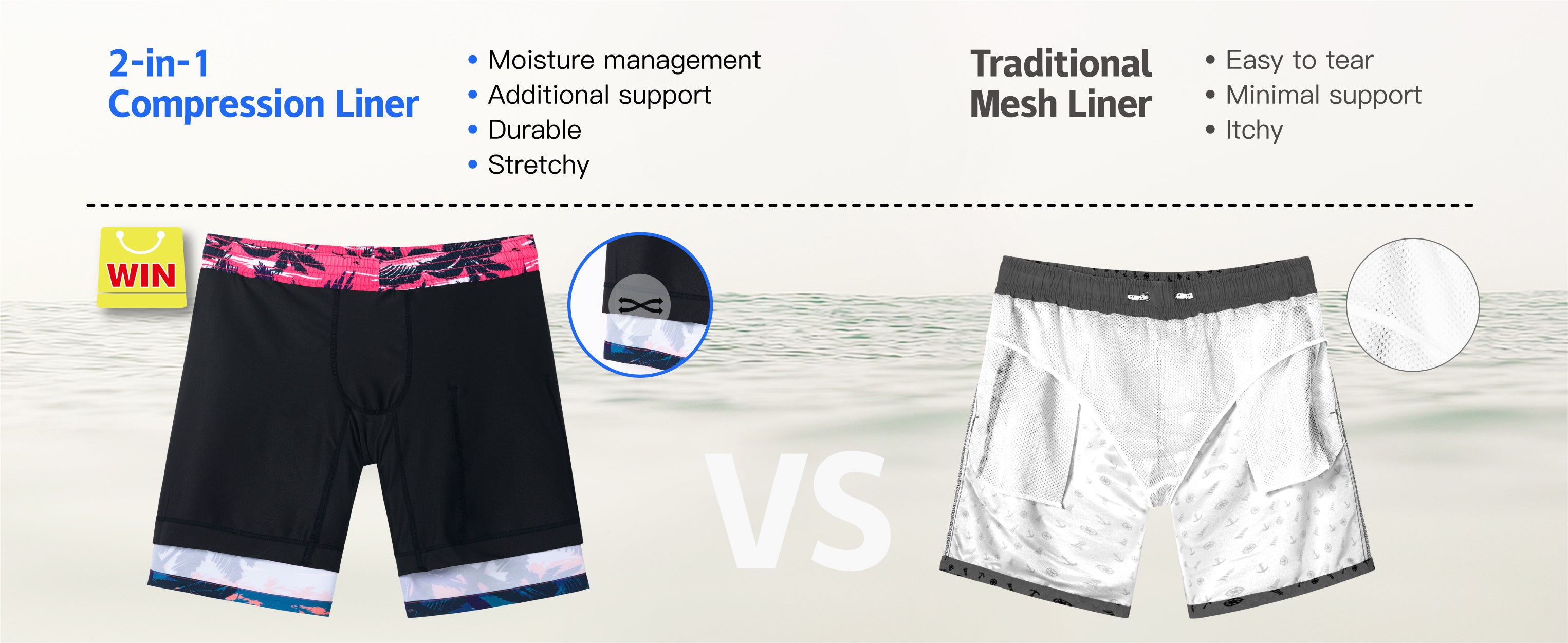 Made for movement, the Surfcuz 2-in-1 Quick-Dry Swim Trunks offer a modern, athletic fit with long-lasting comfort. The built-in stretch liner provides support where you need it most, while the 9-inch outer layer offers a sleek, functional silhouette ideal for high-performance activities.