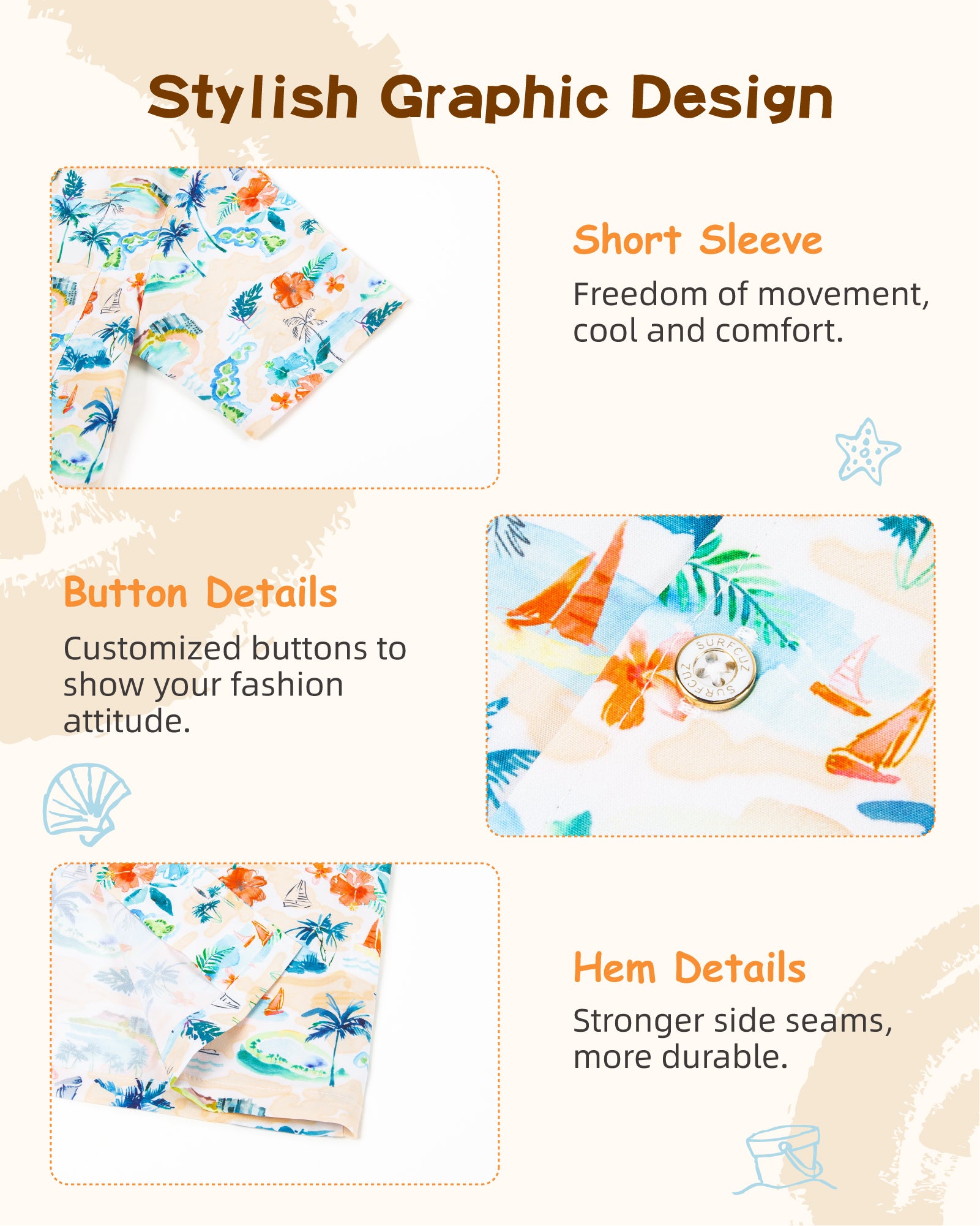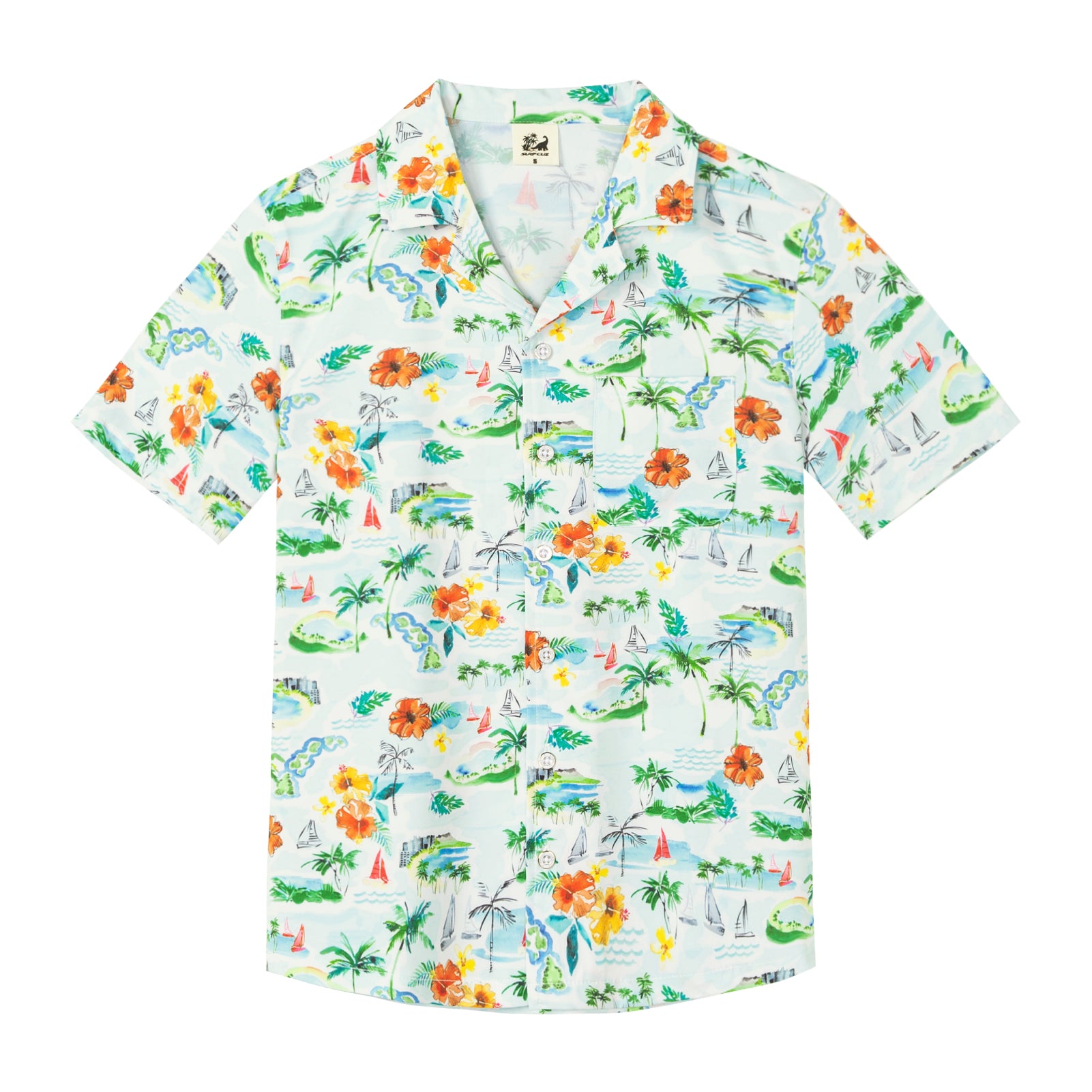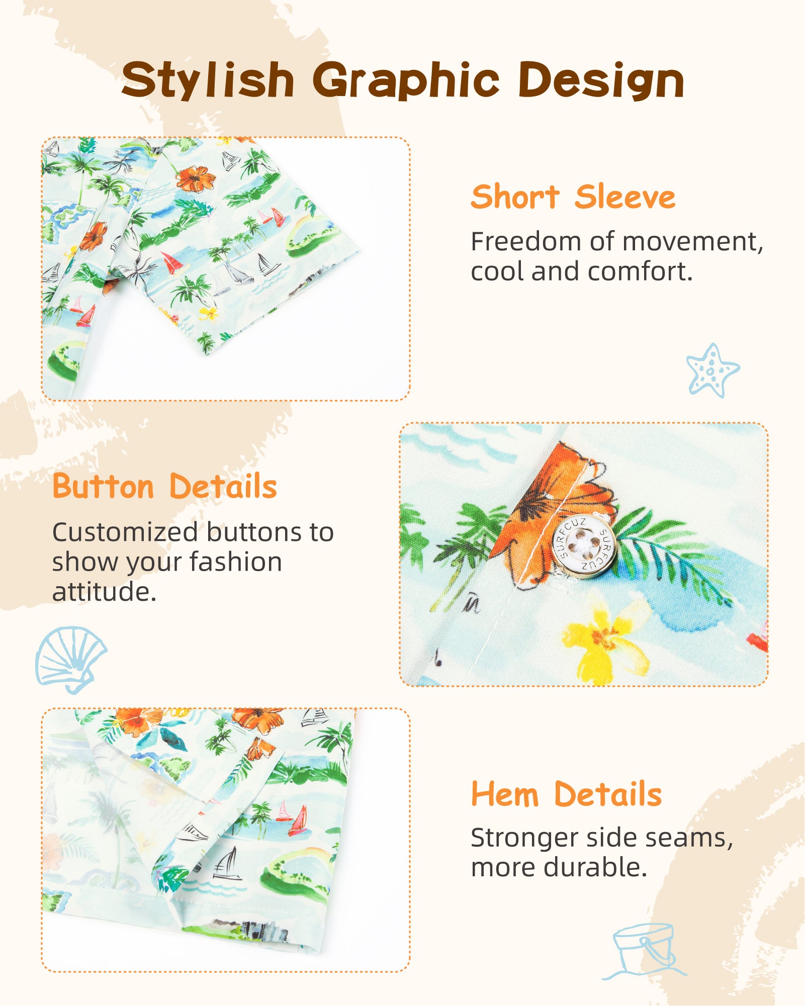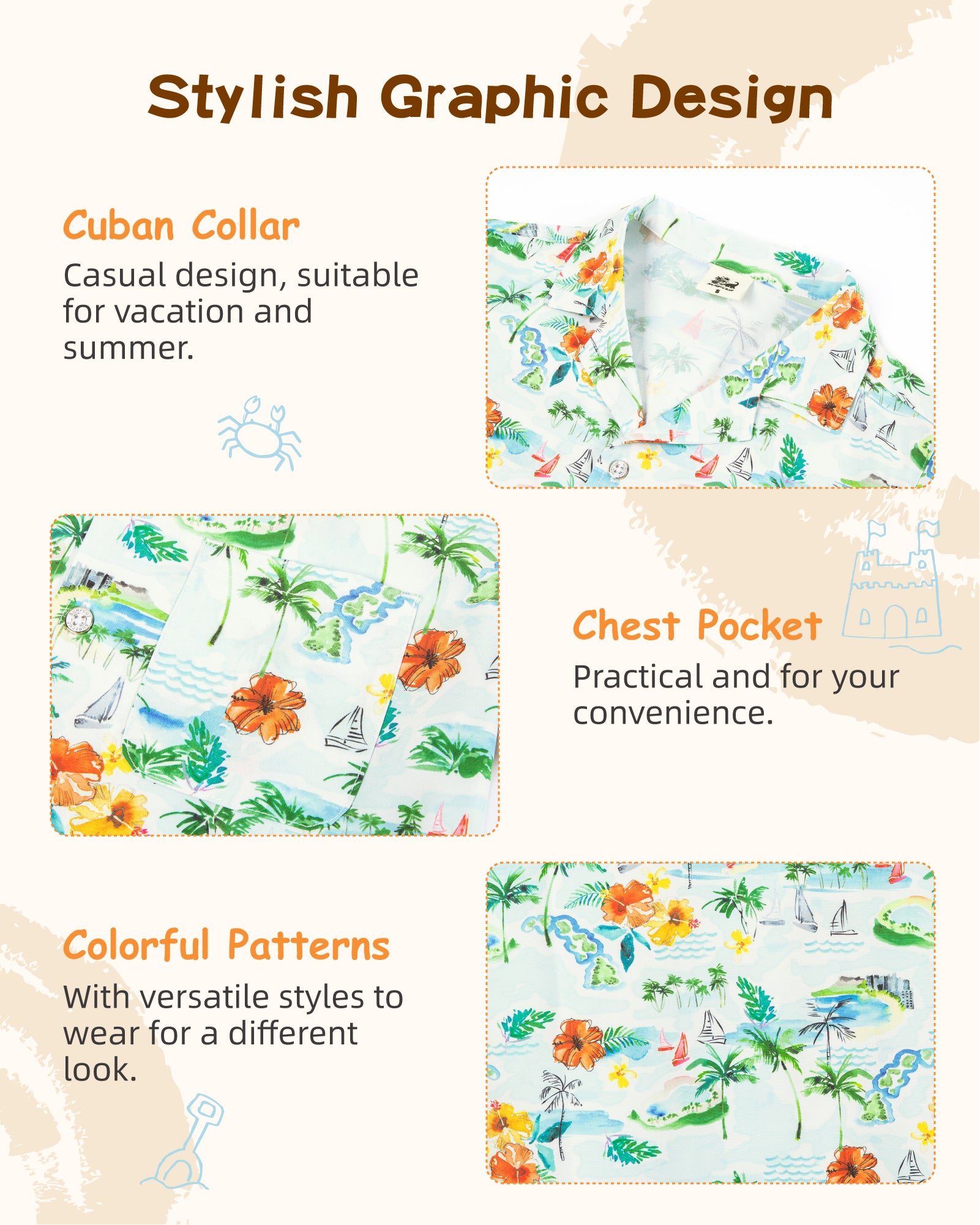 Boys' Hawaiian Shirt - Quick-Dry, Stretchy Button-Up for Vacation & Beach