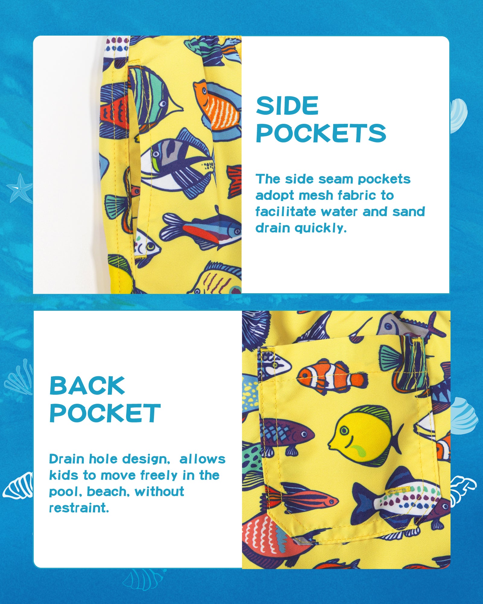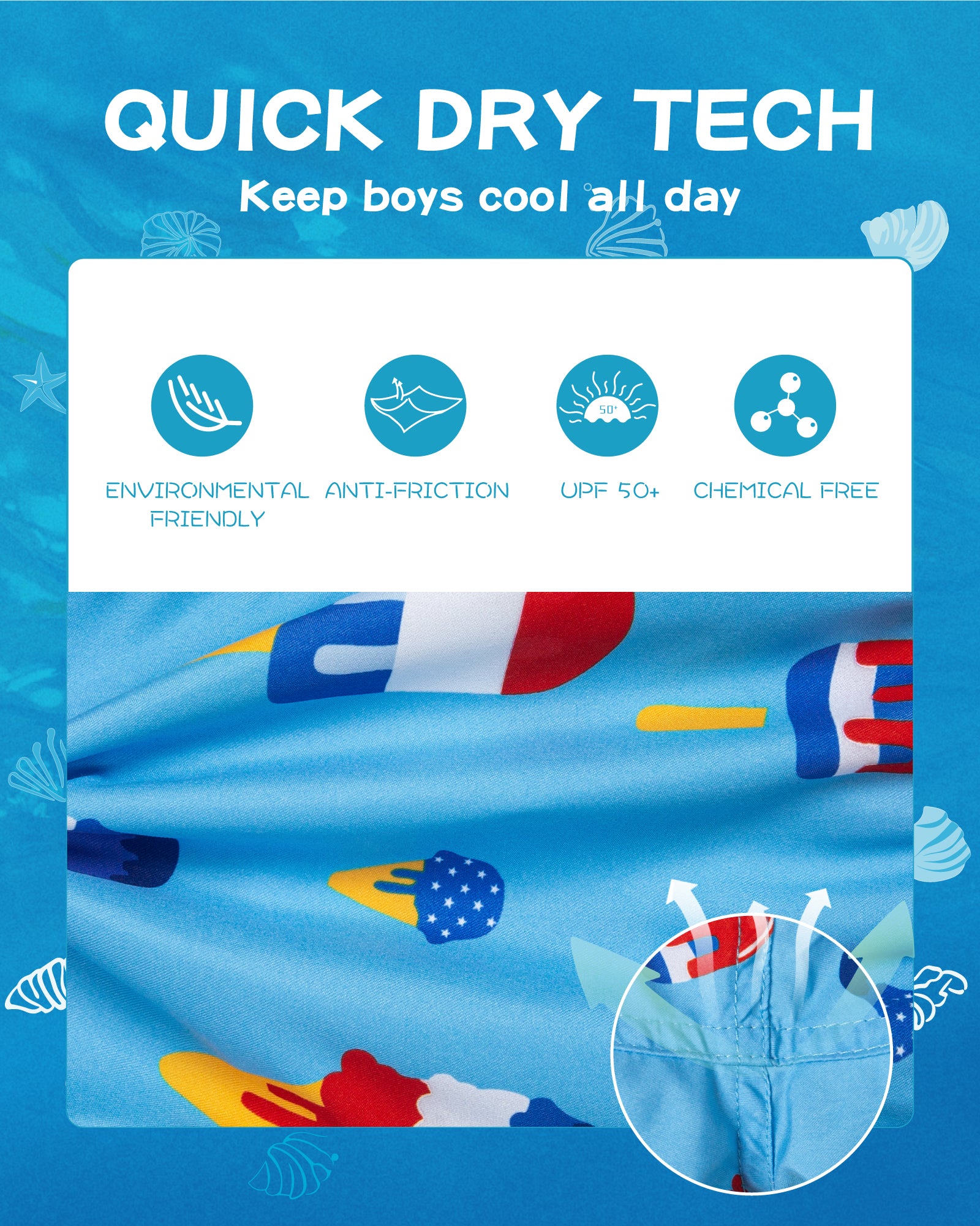 Boys Swim Trunks UPF 50+ Quick Dry With Mesh Liner & Pockets