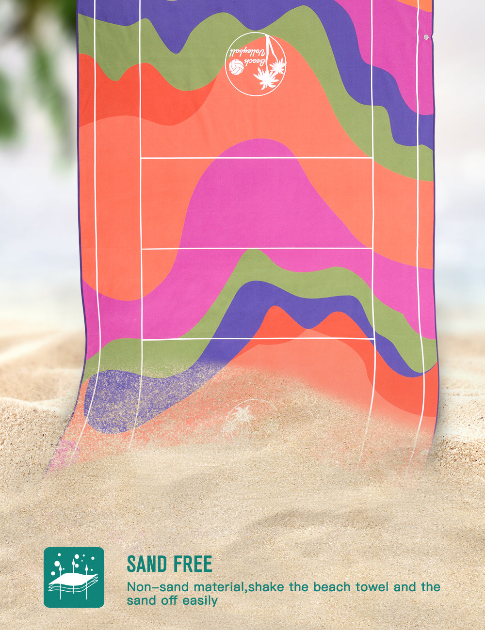 Volleyball Court Print Sand Proof Microfiber Beach Towel